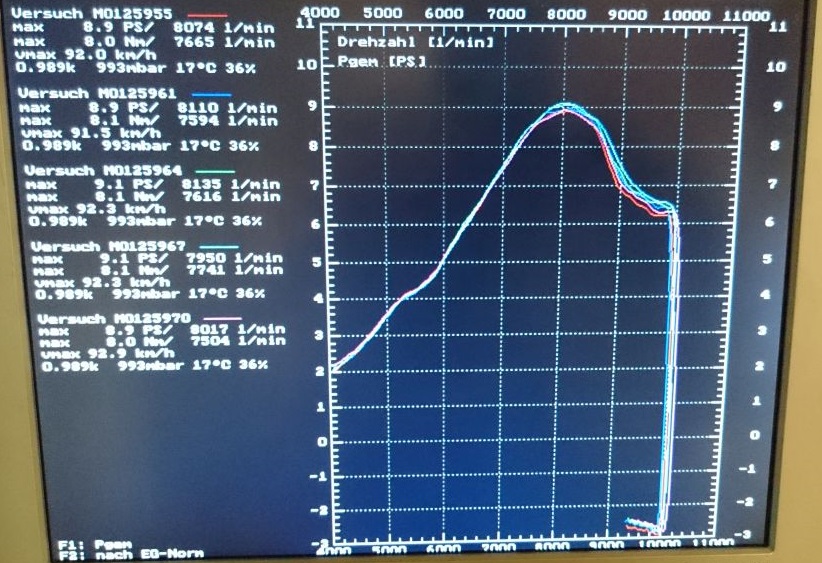 Rot und Rosa sind ohne Boostbottle (erste und letzte Messung), die anderen Kurven verschiedene Schlauchlängen.Sind die Werte mit einer selbstgebauten oder gekauften BB erreicht worden ? Die einzigsten BB die halbwegs funktionieren sind / waren die von Polini und Malossi. Von Stage 6, Doppler usw. ist das Volumen zu klein und die Anschlüsse sind alle zu klein bzw. der Durchmesser und auch der Querschnitt der Schläuche.