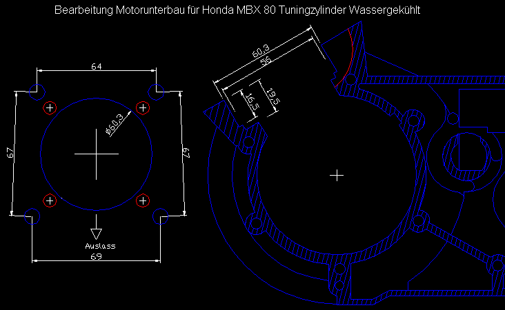 Wieso schlägt er unten nicht mehr an? Mann verlängert mit der Platte nicht das Pleul. Wir haben für den Membraner ein längeres Pleul verbaut und eine Distanzplatte unter den Zylinder gebaut.