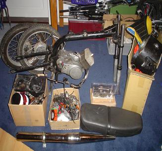 Fehlende Teile die ich noch brauche bzw schon habe: Obergurt, Hinteres Schutzblech, Sozius Fußrasten, Griffe und Hinterreifen!!!
