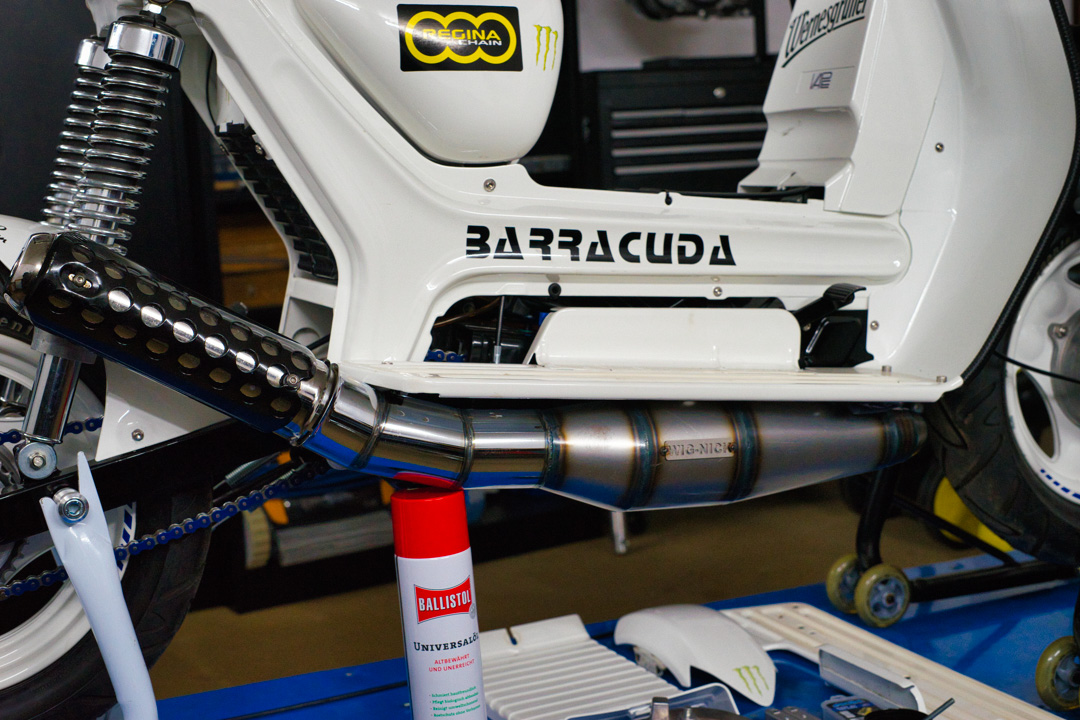 Das Projekt bau ich mit meinem Pap seit Jahren, lief zwischendurch auch schon, wurde jetzt letztes Jahr nochmal komplett umgebaut, Motorhalter verstärkt, Polyurethanbuchsen, Kastenschwinge, Gabel, Motor, Auspuff usw...Rollertypisch wird das Ganze wohl Meinungen spalten.