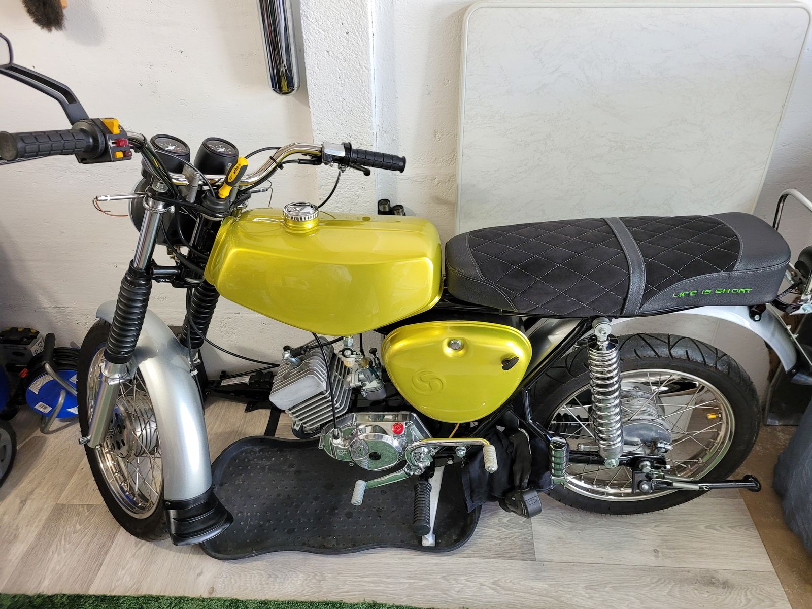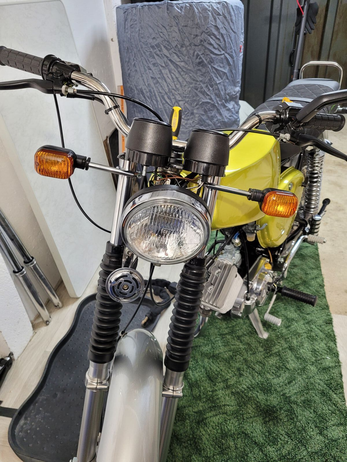 Einmal kompletter Neuaufbau inkl. Kabelbäume, ZT Gabel, Rahmen strahlen+Lack, ETZ Lenker, Kompaktschaltergehäuse, neue Edelstahlräder und Umbau auf 50ccm..Endlich relativ legal unterwegs
