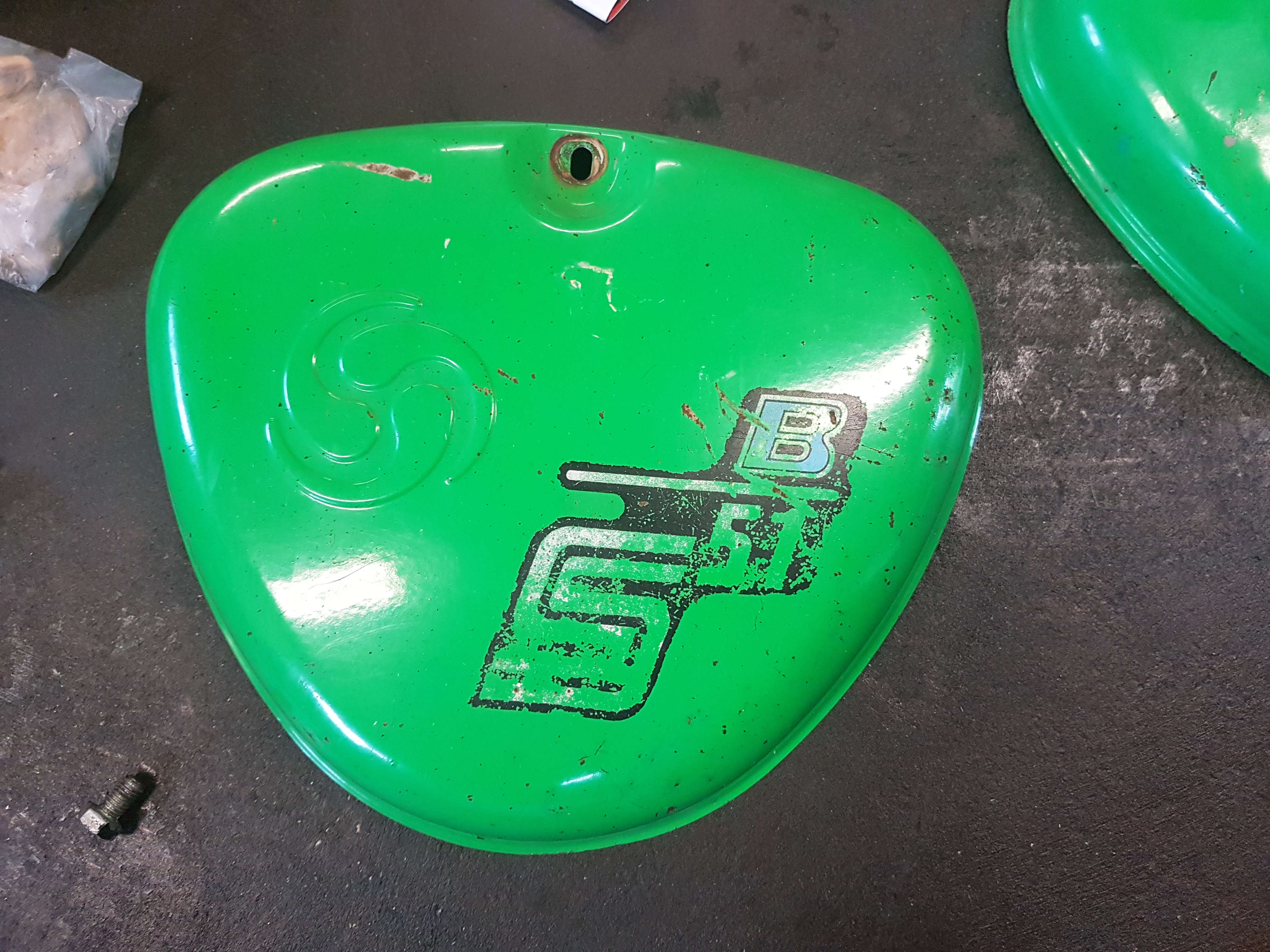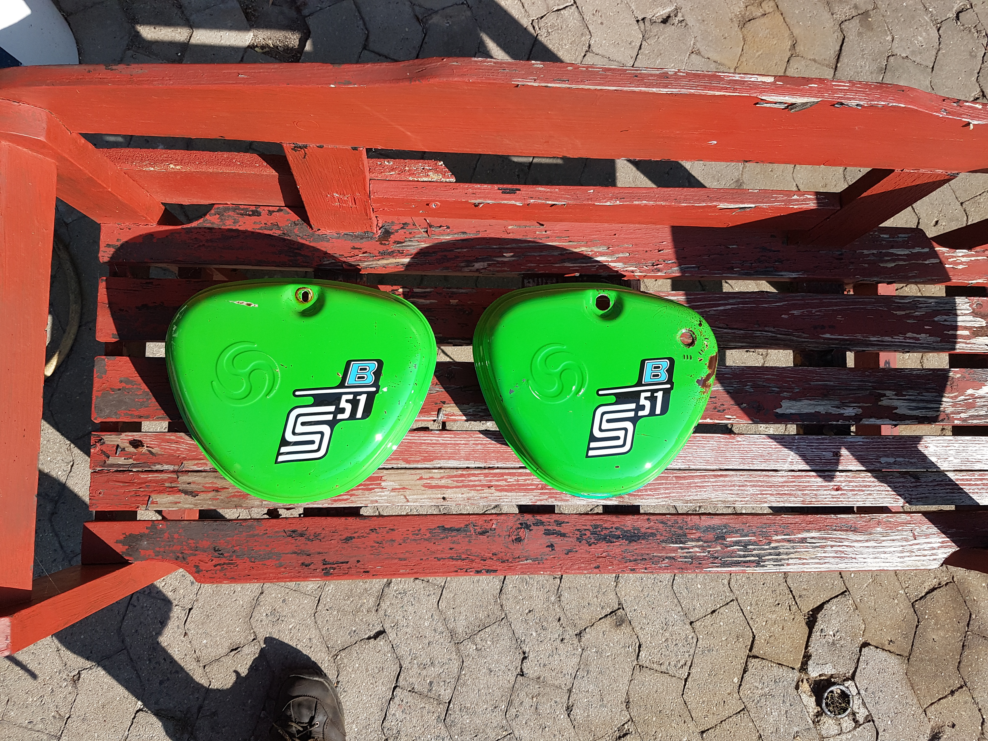 Der linke Deckel ist schon stark patiniert, gerade durch den Betrieb mit Schlüsselbund am Zündschlüssel. Vielleicht fällt mir bei Gelegenheit mal ein besseres Exemplar in die Hände. Hab sowieso noch vor, ein Lackset mit Wasserabziehbildern zu versehen.