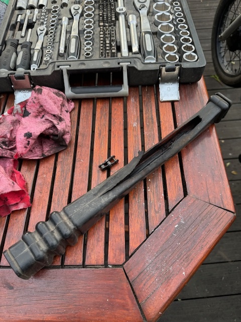 Hat er mir auch glatt noch geholt. Fußraste wieder festgeschraubt.