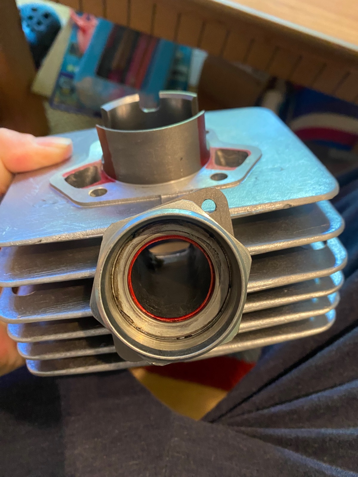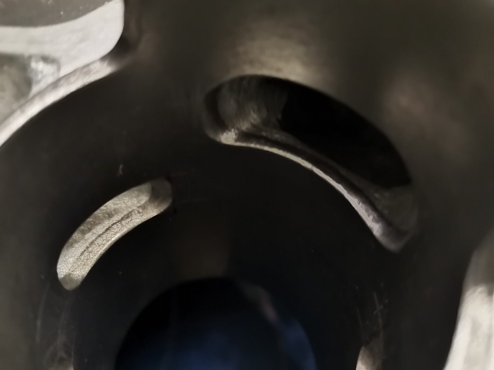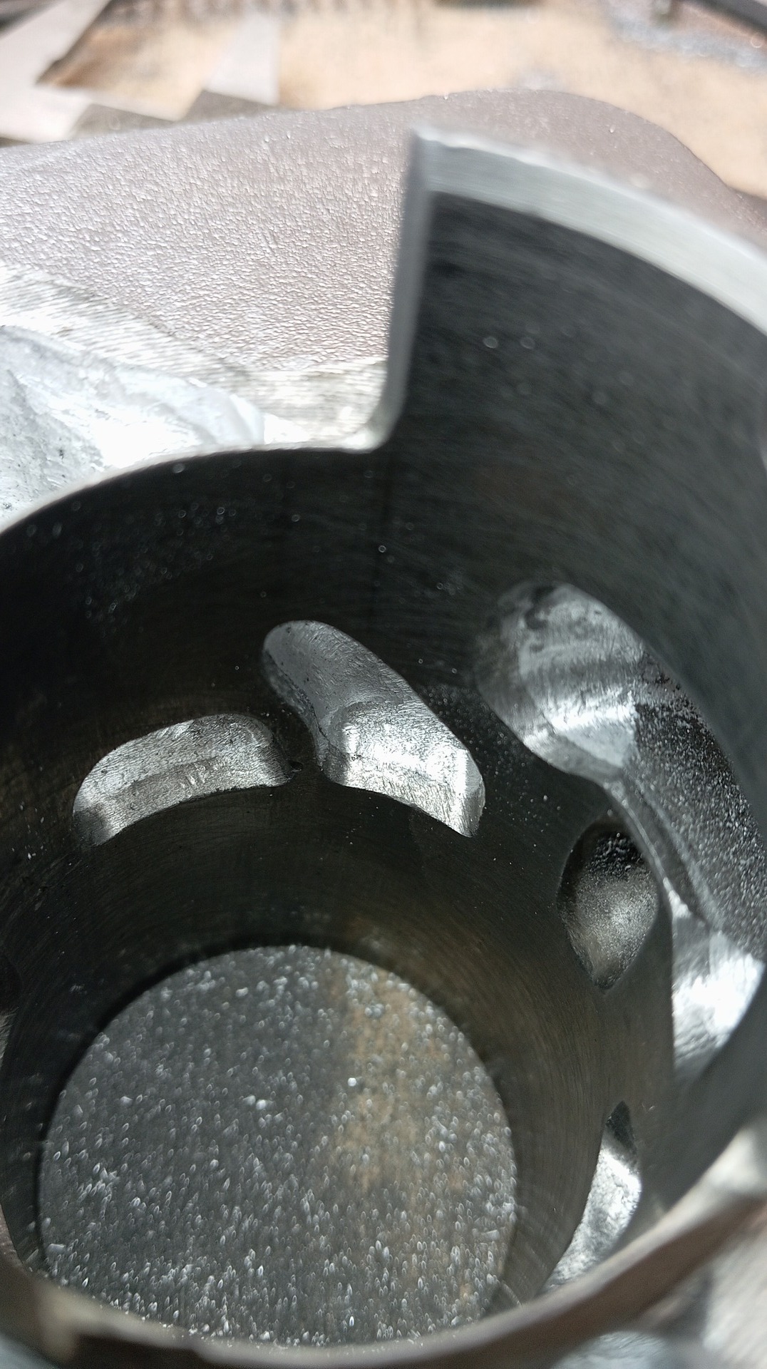 Witzig, dass hier alle grad mit 70ern hantieren, dachte die wären völlig aus der Mode gekommen, seit es 85er 90er etc. gibt. Wären für mich selbst uninteressant, wenn ich nicht zufällig 2 Fahrzeuge gekauft hätte mit 70ern. Da in der Schwalbe meiner Frau n toter MZA 70 4 drin ist, den seine Kolbenringe mittlerweile auf 70 km/h begrenzen habe ich einen SSW Bohrmaschinen-Zylinder etwas nachbearbeitet. War ein 70 5 die Kanäle waren nur gebohrt, nichts gefräst, erste Kanäle unangetastet, Stützströmer grenzwertig tief überm Einlass. Einlass nur tiefer gefräst und Auslass nur verbreitert. Hatte 155 119 168. Jetzt 157 126 183. Der 5.te Kanal bleibt tot gelegt. Mach jetzt Probefahrt mit dem Originalkolben und steck dann den King Kong Kolben rein. Bisschen Low Budget am Moped von der Frau,lol. Aber kommt ein lagerneuer 21 rvfk der ersten Generation ohne CS rein. Daher ich bin gespannt...