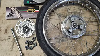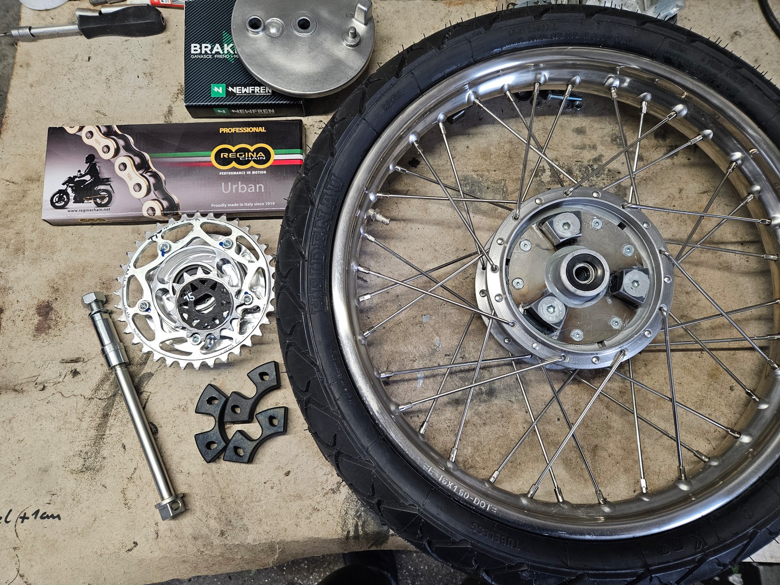Gestern Felgen eingespeicht und heute Rückdämpferumbau gemacht. 415er Ritzel und Kette gibts auch gleich dazu.