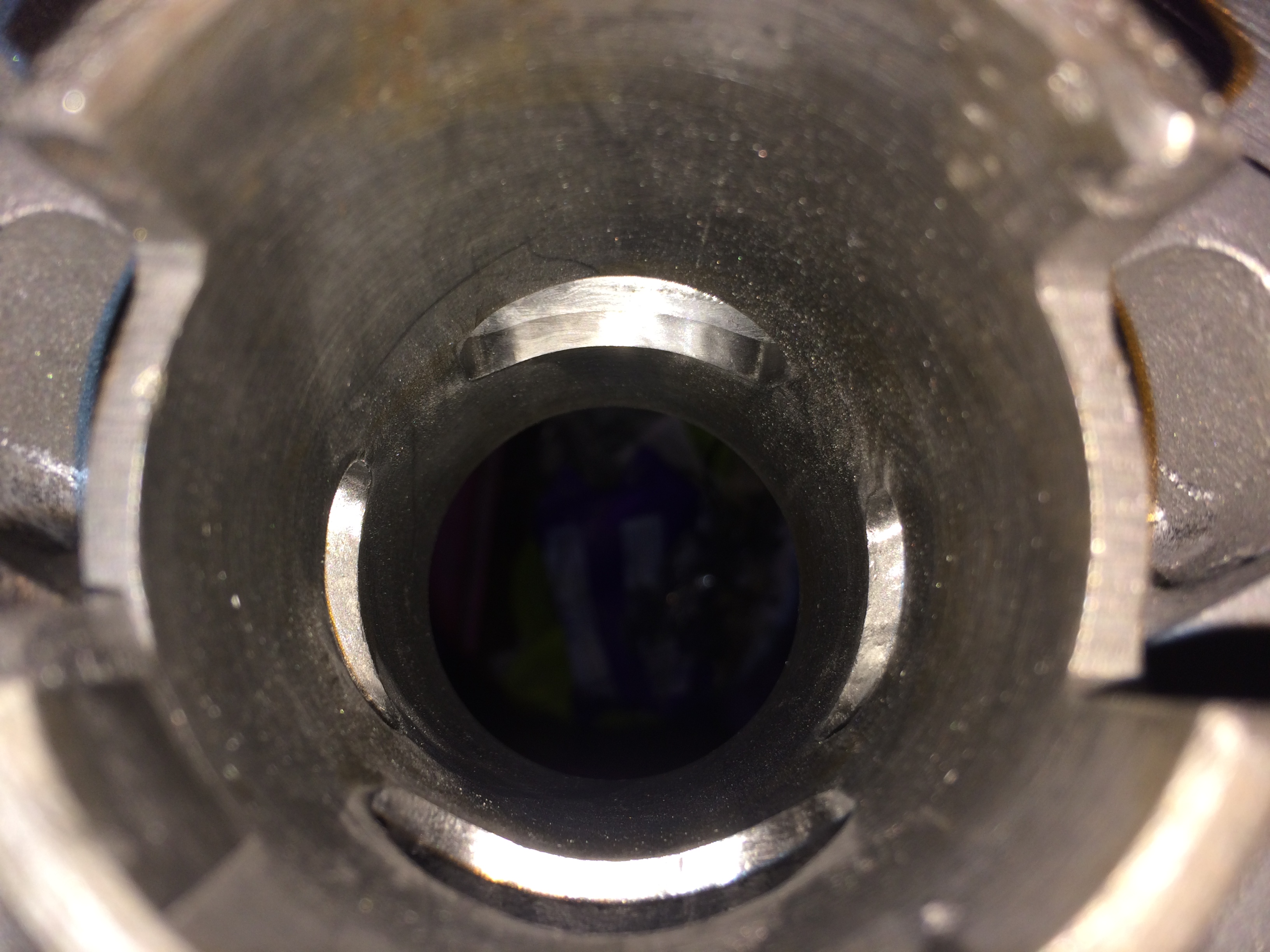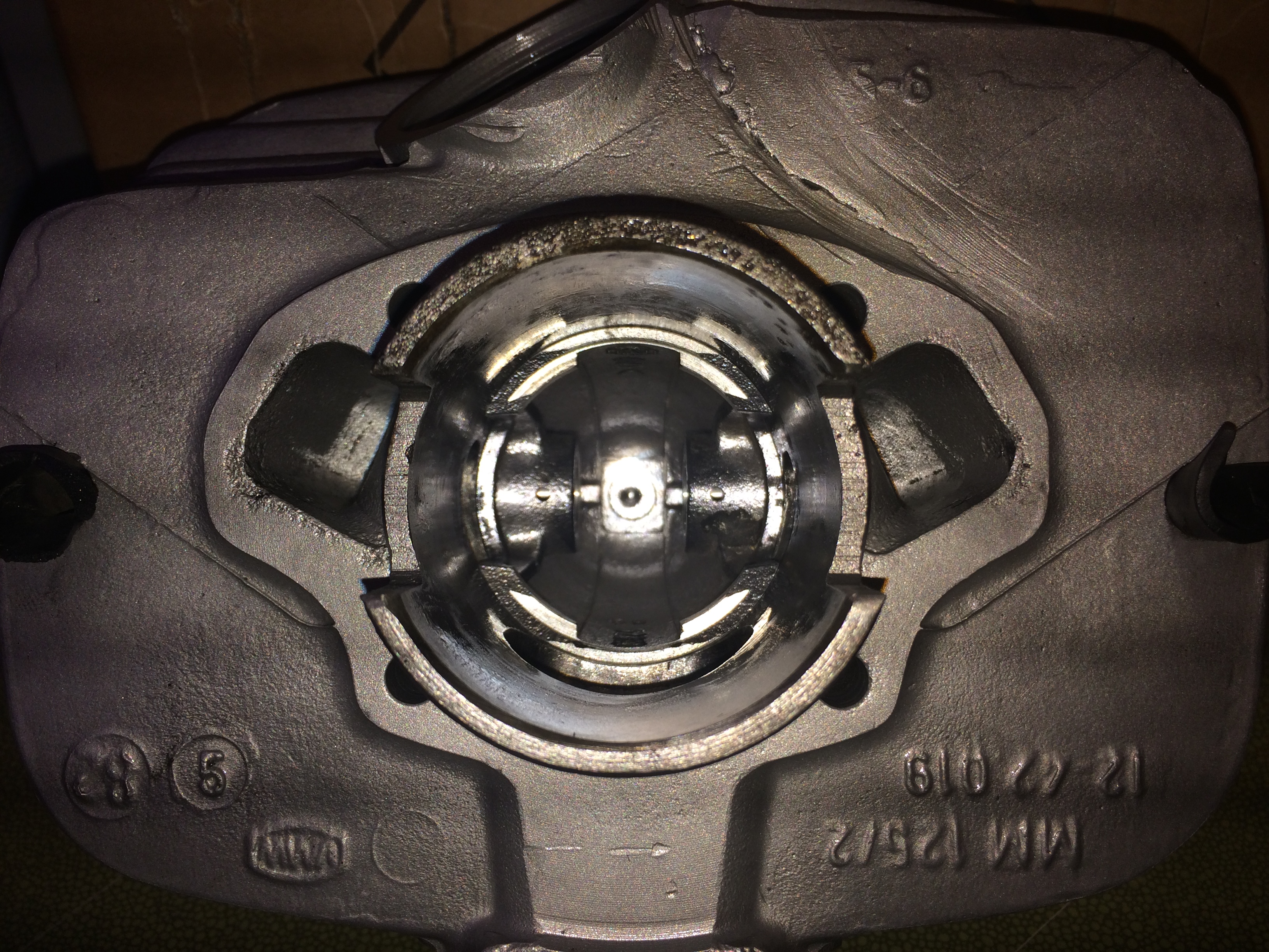 Die ES250/1 auf die Seriensteuerzeiten grob vorgefräst, da stark abgesackt, die Büchse für die Nebenauslässe durchfräst und festgestellt, dass hinter den Stegen wohl kein Alu bleibt, da der Guss Schweinedick ist.