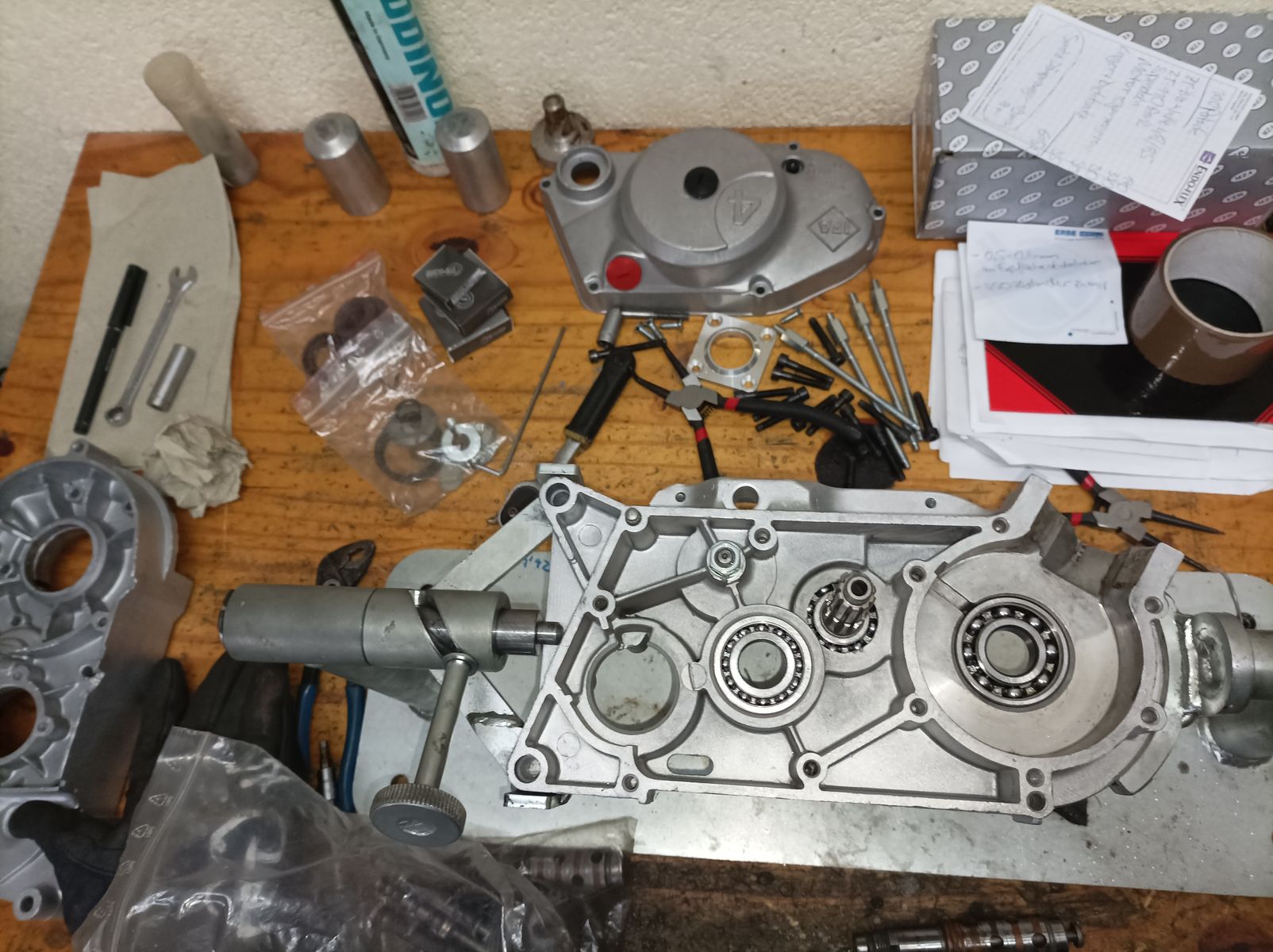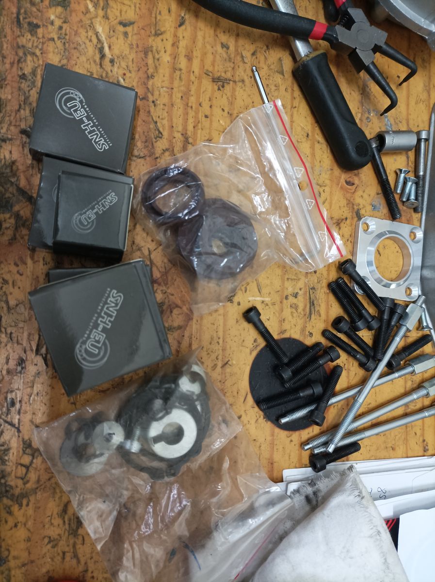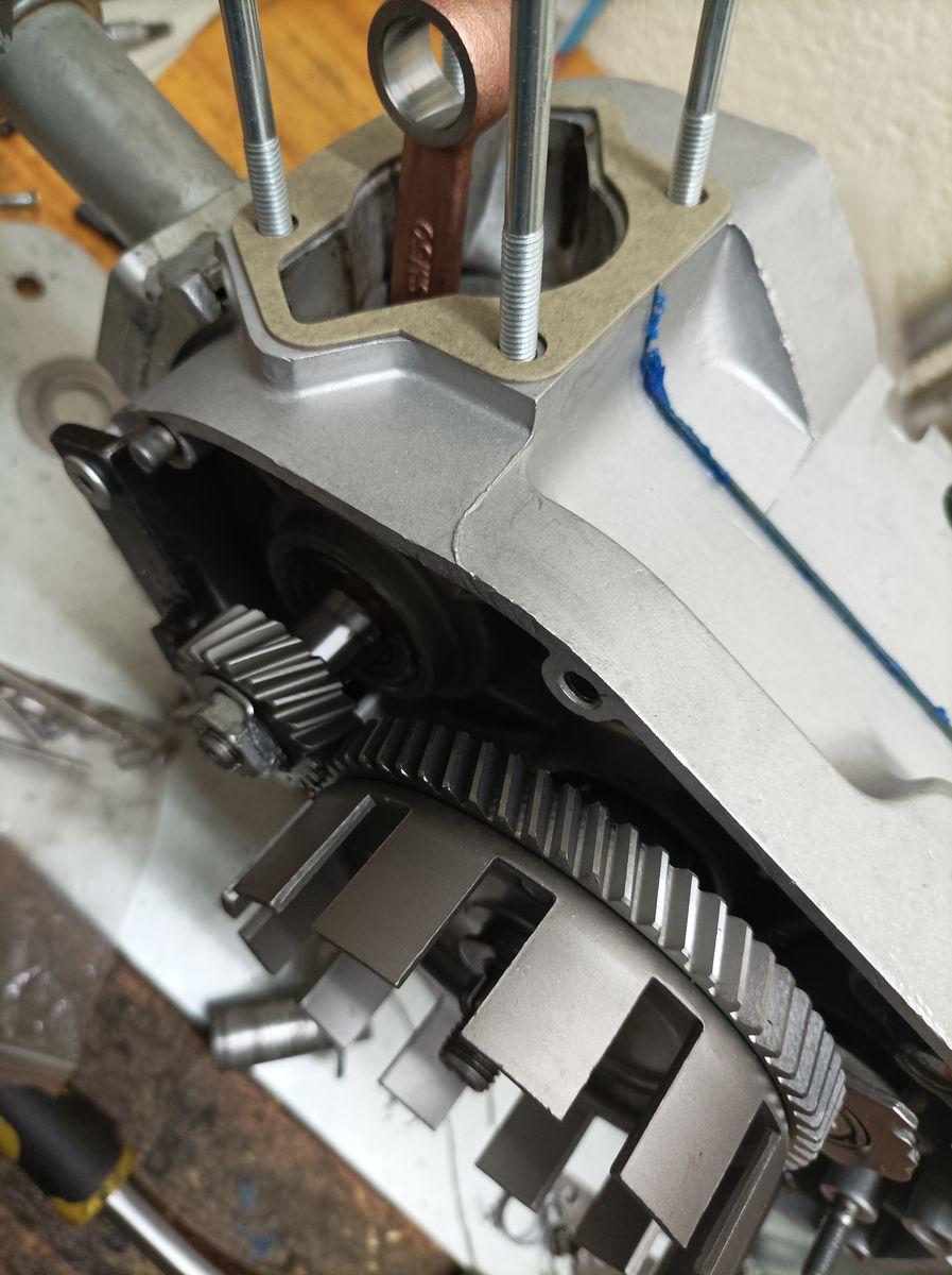 Kleine Verbesserungen wie der verschraubte Schaltwalzenbolzen, der CNC- Abtriebsdeckel oder die Motorsporthaltekrallen kamen rein, weil ichs noch liegen hatte.