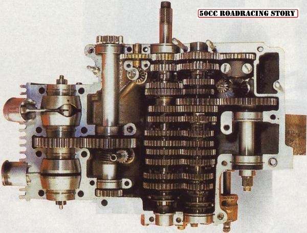 Suzuki hat in den 60er Jahren ohne Vorgelege gearbeitet. Zunächst mit 12, später in der RK66 mit 14 Gängen. Das waren sehr erfolgreiche 50ccm Motoren mit zwei Zylindern, die die WM gewannen (im Test sogar als Dreizylinder, der aber aufgrund des noch schmaleren Drehzahlbandes nicht im Rennen zum Einsatz kam).