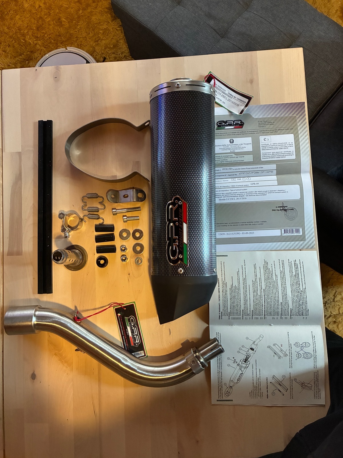 Jetzt gab es doch mal was zu tun an der lütten CRF. Neue Bremsscheiben braucht es fürn TÜV. Und ich schicke den originalen rostigen Endtopf in Rente. Sie kriegt einen Edelstahldämpfer mit Kat von GPR aus Bella Italien. Echt schön gebaut das Teil.
