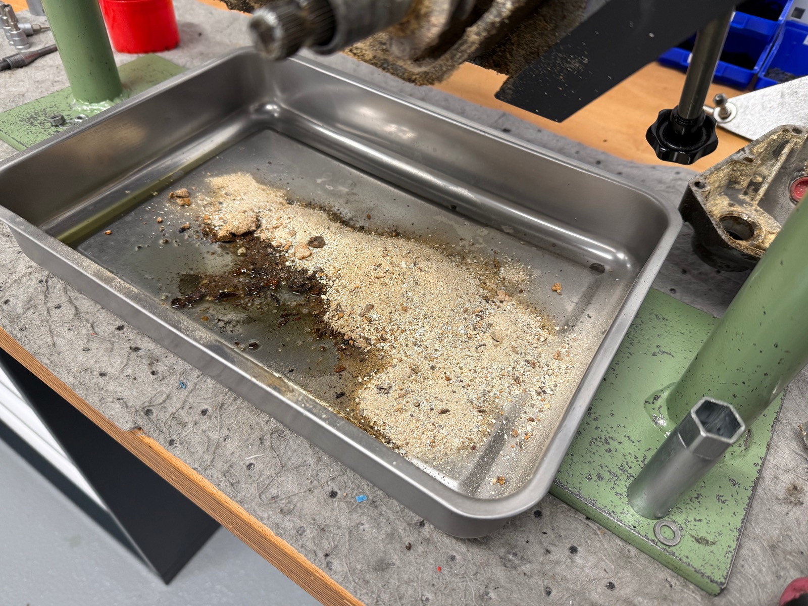 Fahrzeug stand mehr oder weniger trocken in einer Scheune seit 1992. Im Motor ist nur noch Sand… kann sich das jemand erklären? Wo ist das Öl hin? Mir währe neu das sich Öl zu Staub zersetzt… Defintiv keine Wasserleiche, habe das Fahrzeug hier und den Motor selbst ausgebaut.