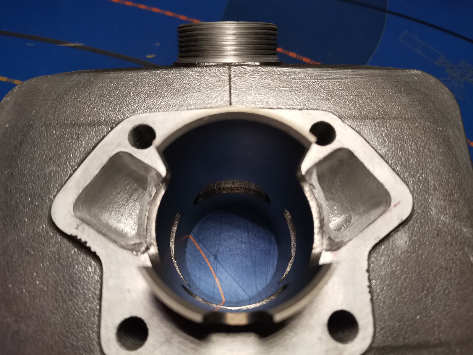 Erfahrungsgemäß bringen die hohen Zeitquerschnitten an den Überstömern an solchen Systemen keine Besserung mehr. Habe ich mal In 2mm Sehnenmaß-Schritten auf dem Prüfstand probiert, sowohl an 85er und 60er Sportzylindern. Rein Optisch würde ich schätzen kommt man hier mit 60-70% der hier gefrästen Fläche zum gleichen Ziel und kann sich das fräsen sparen.