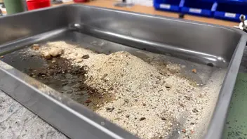 Das sind irgendwelche Pellets die ein Nager über den Kettenzugang in die rechte Motorhälfte reingeschleppt hat….und das nicht zu knapp