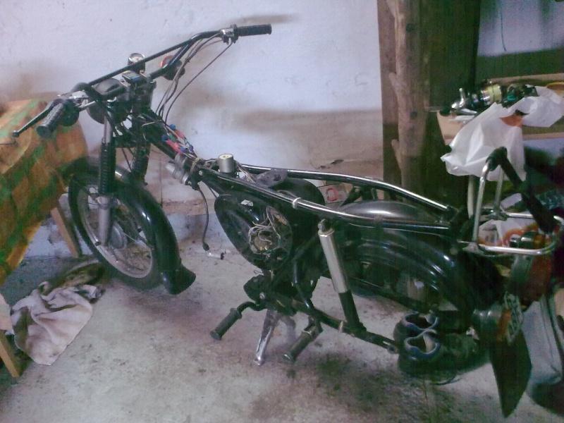 Ich habe das Moped erstmal grob zerlegt, Tank, Sitzbank, Motor und Hinerrad sind demontiert. Dies ermöglicht schonmal den groben Überblick. Ich hab mir auch gleich die Mühe gemacht und das Gefährt von dem über 30 Jahre alten Öl- und Sand Gemisch befreit, schaut doch gleich ganz anders aus...die Tuningsünden sprich Endurolenker, Fahrradtacho etc. sollen natürlich in dem Zuge verschwinden und Originalteilen weichen.