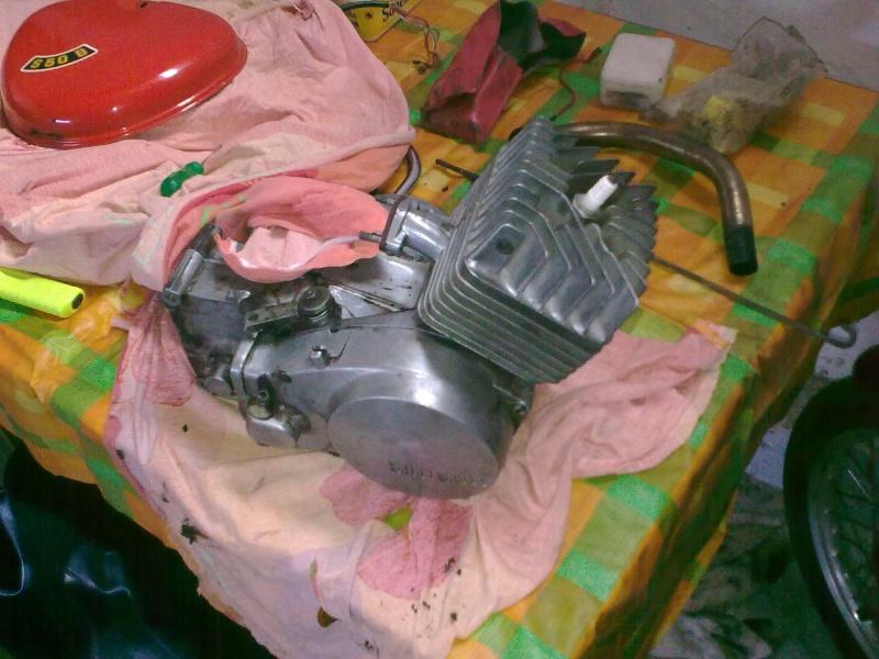 Das Herz, und auch das größte Sorgenkind. Hat mittlerweile gute 26000km auf der Uhr, und läuft immerhin noch... zieht aber Getriebeöl, daher müssen Kolben, Zylinder und sämtliche Lager und Dichtringe ersetzt werden. Da bin ich gerade bei, hatte ihn schon offen... warte noch auf die Teilelieferrung. Vergaser wird natürlich mit überholt, aber aus Altbeständen... hoffe ich finde noch was. Ansonsten kommt ein Neuer rein... da werden keine halben Sachen gemacht.