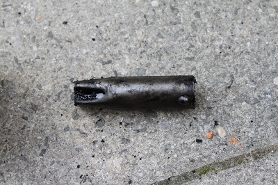 Das Endrohr mit Verengung ist auch ausgebrochen.