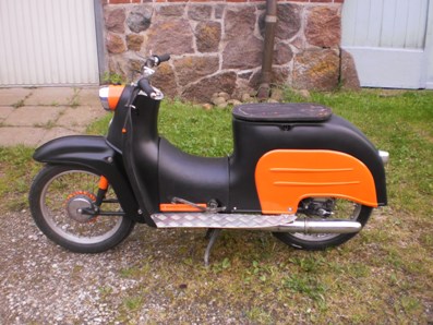 gefällt mir echt sehr gut .Gerade die KR50 Maske finde ich Optisch echt super, hätte ich auch gerne. Auch die verlängerten Trittbretter finde ich sehr passend . hatten ja früher eigentlich alle, berliner roller, troll, czesetta,Tatran usw. Farblich hätte man sicher noch was machen können, aber jeder hat halt einen anderen Geschmack.