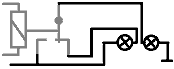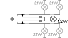 Blinkkontrolle1: eine Glühlampe, zwei Dioden (jeweils eine sperrend) und ein direkter Massekontakt