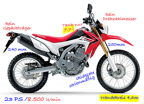 Die XR250 ist jetzt aber auch nicht das Leistungsmonster, sondern wird viel bei Endurokursen und so weiter benutzt...