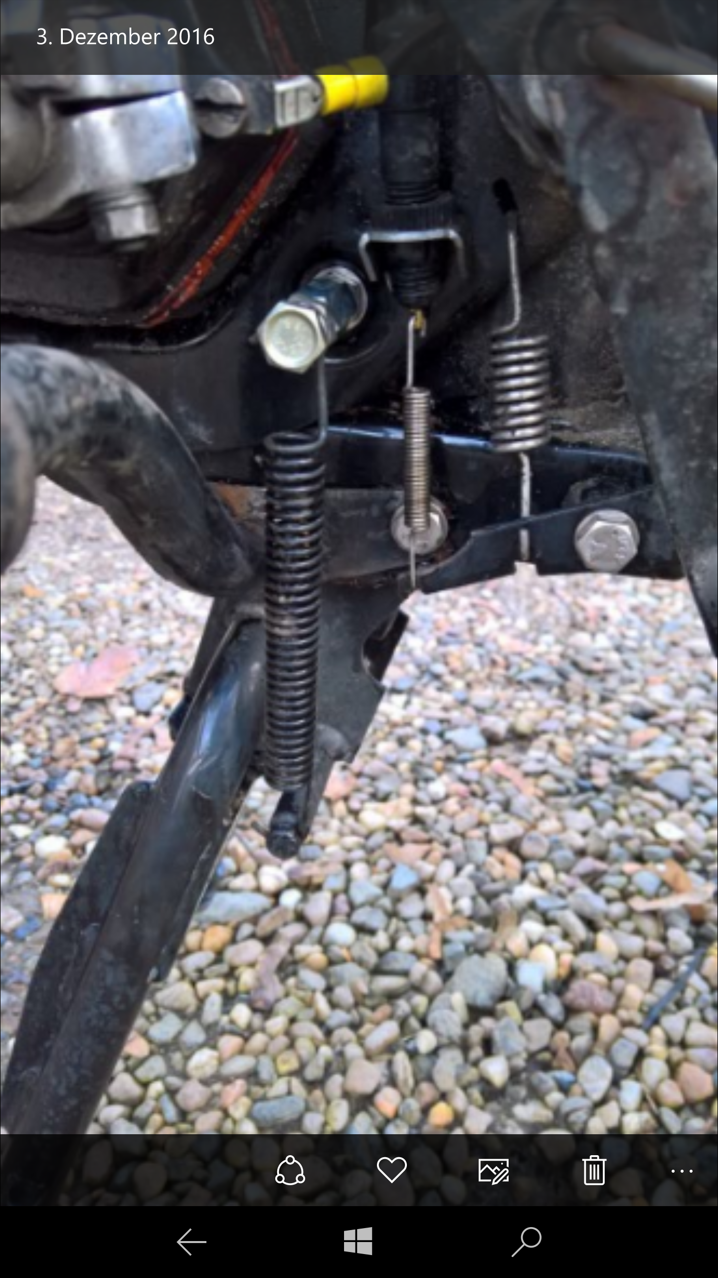 Zum originalen Hauptständer ist eine spezielle Mutter, die auf die untere Motorhalterungsschraube geschraubt wird. Dort kann die Feder eingehangen werden. Vielleicht hast du ne falsche Feder. Wenn du willst, kann ich dir Morgen ein Foto von der Mutter machen.