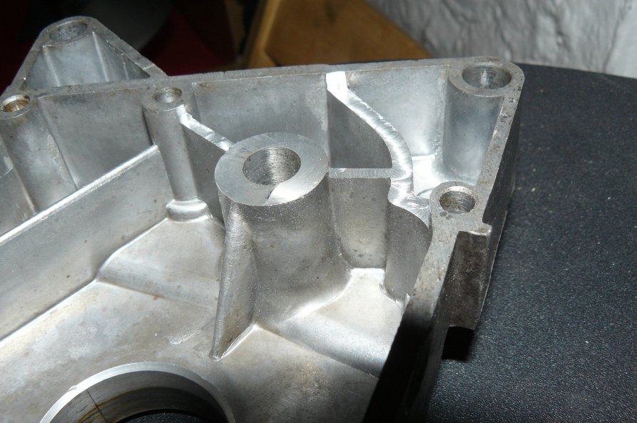 Fürn Motor für die Alltagskarre hab ich schon angefangen, alle möglichen Ecken und Kanten weg und rund gefräst. Auslasssteuerzeit ist jetzt bei 174° und bau ich einen angepassten Auspuff. Spitzenleistungsdrehzahl hab ich mal auf 8000 U/min angelegt, weil es mit der Resonanzlänge vom Auspuff sehr gut hinkommt. Die 174° sind dabei entstanden die obere Kante vom Auslass wegzufräsen, sodass es gerade mit dem Auslass läuft. Am Alu hab ich nichts weg gedremelt.