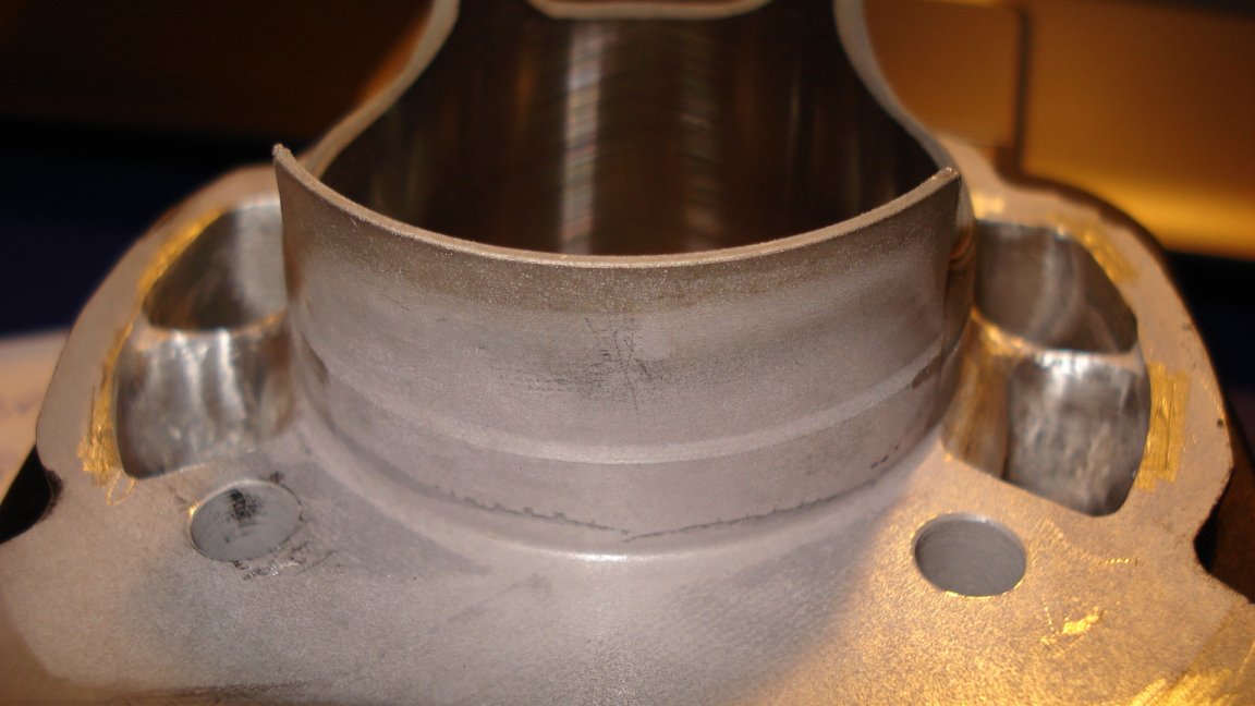 Die meisten noch erhältlichen 2 Takt Fahrzeuge (Scooter oder Schaltmopeds) haben ja Motoren von Minarelli, Piaggio oder Derbi eingebaut. Ohne Veränderungen am Block kann man bei Pia Motoren 70ccm Zylinder und bei bspw. Derbi Motoren 80ccm Zylinder einbauen. Damit die Zylinder auf den Block passen-sind die Laufbuchsen einsprechend "dünn" ausgelegt. Der Überstand der Laufbuchsen variiert-je nach Zylinder Hersteller. Bei dem hier abgebildeten 70ccm Stage 6 MK2 Zylinder ist die Wandstärke der Zylinderbuchse im oberen drittel 2mm und unten 1,8mm. Der Buchsenüberstand 27mm. Der gleiche Zylinder von Polini(Evo)-Buchsenwandung 2,1mm-unten 1,9mm, Überstand 29mm. Die Graugussbuchsen von Tuningzylindern (z.B. Polini Corsa) haben auch nur eine Wandstärke von 2mm und funktionieren damit recht gut.