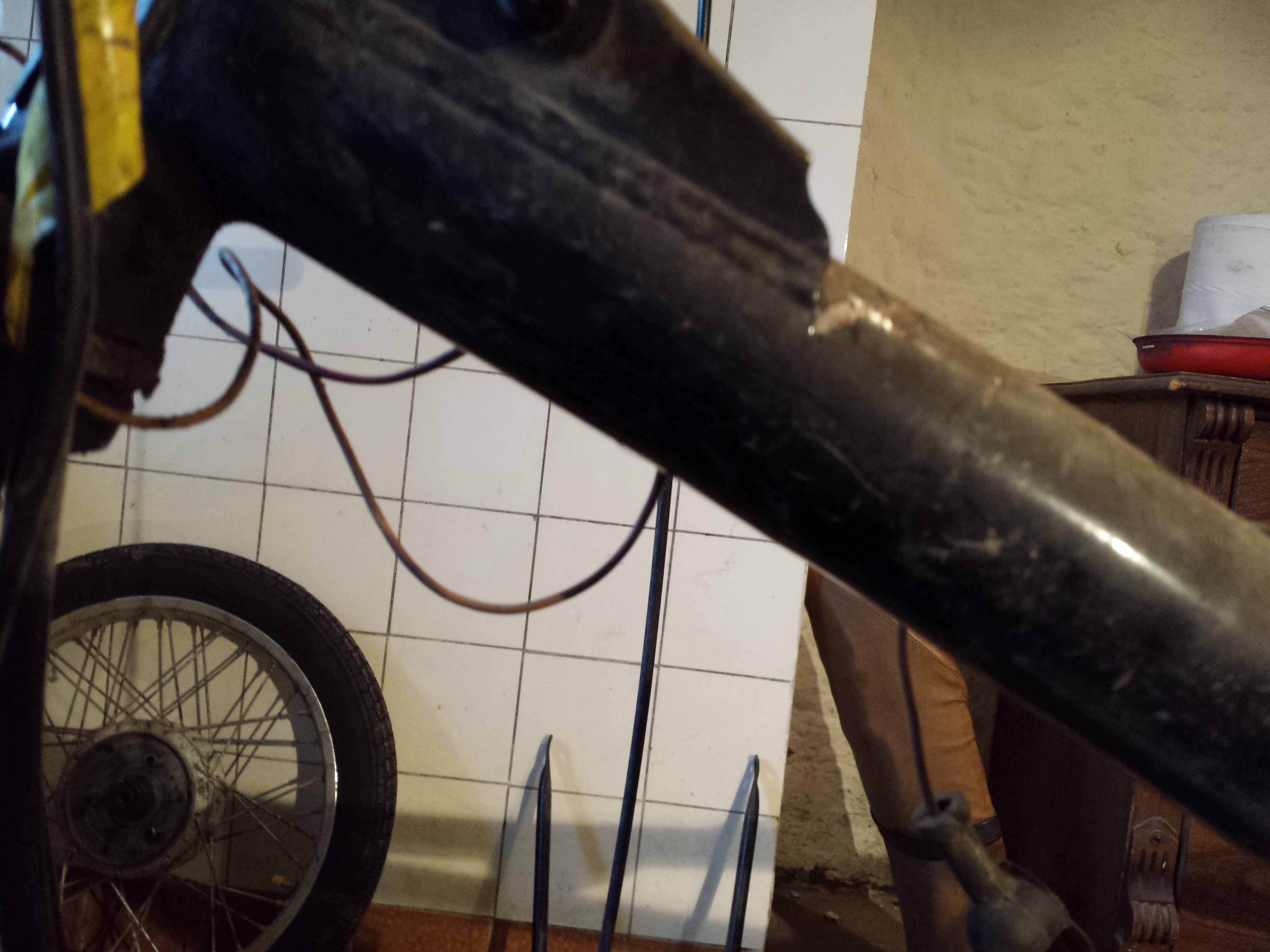 Am Rahmenfuß die übliche Stelle, die man schweißen kann. (wenn noch genügend Material da is)