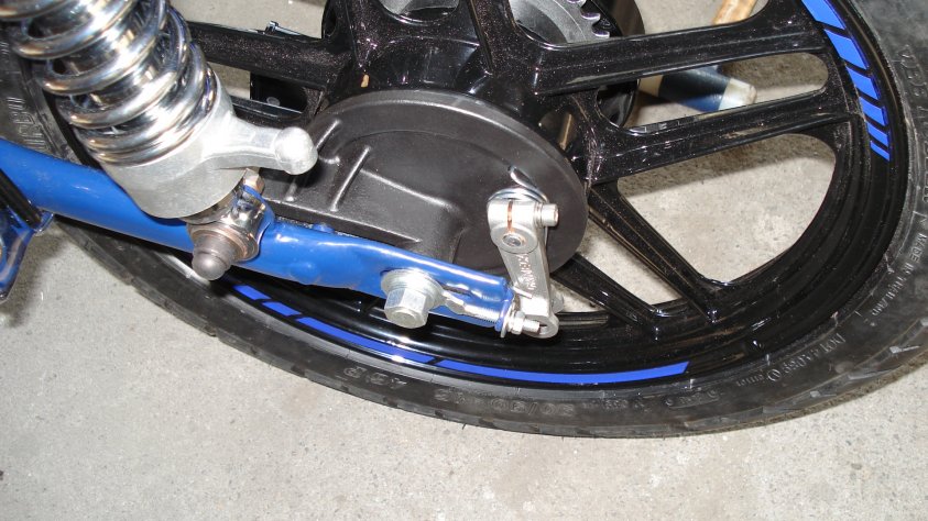 • Ist ja noch nicht fertig. Ich hatte mir ein neues Nabentacho bestellt...was liefern die? Die 17 Zoll Ausführung :( Ich habe mal die beiden verglichen. Außer das innen die Übersetzung anders ist-sind die beide fast baugleich. Der Unterschied besteht in der Länge der Distanzstücke im Nabentacho. Die 16Zoll Gußradausführung 19mm und die 17Zoll Speichenradausführung 21mm. Die Sch..... Enduro Streben passten auch nicht ( um 8mm). Dremel ran und die linke Strebe noch etwas gebogen. Die Klappfußrasten (der billige Nachbau) werde ich zurück schicken. Die sind anders gebogen wie die Teile von MZA. Sogar mit einem Stino-Auspuff stößt man oben schnell ran. Bereifung habe ich Vee Rubber VRM 089 genommen. Vorn 80/90x16 hinten 90/90x16.(das sind sogar P-Reifen..bis 150km/h). In der Betriebserlaubnis stehen ja auch 80/90 Reifen drin. Der Nachteil-der Kippständer kippelt jetzt etwas. Da werde ich in der nächsten Woche mal 1cm starke Aluplatten ran schweissen. Im nach hinein ist mit noch eingefallen,dass ich ja auch hinten eine SB einbauen könnte. Ich habe noch eine Vorderrad-Gußfelge und an der sind ja beidseitig Bohrungen für eine SB. Also-auf eine Seite die SB und auf der anderen Seite das Ritzel evtl. noch Aludistanzscheiben drehen. Aber ist ja alles schon gepulvert.....