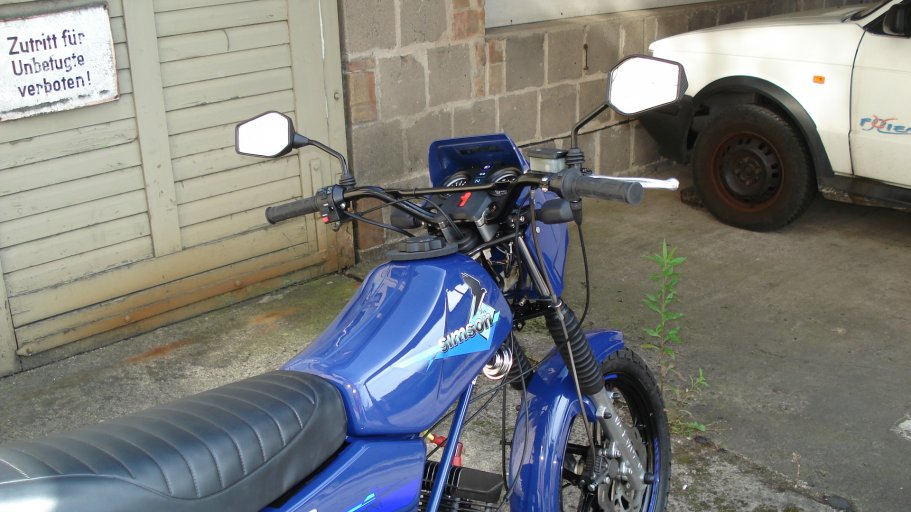 ich wollte mal hier meine "Neuerwerbung" vorstellen. Eine Simson S53 Habicht CX. Das Fahrzeug ist Baujahr 1999, Kilometerstand: 4800.Bei der Probefahrt war ich überrascht. Trotz der 50Km/h Zulassung schaffte die Simson locker 65km/h lt. Tacho. Der Zustand ist erbärmlich. Alles "schön" verrostet und vergammelt.