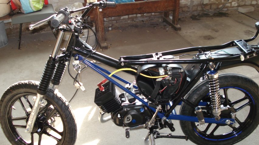 Der Neuaufbau ist fast fertig. Noch einpaar Kleinigkeiten......Zum Motor: neue Motorhälften, S70 Primär, 5 Gang kurz, Vape A70/3, Zylinder RZT LT 60ccm Reso mit Barikitkolben, 18er RZT Vergaser. Hier die Bilder: