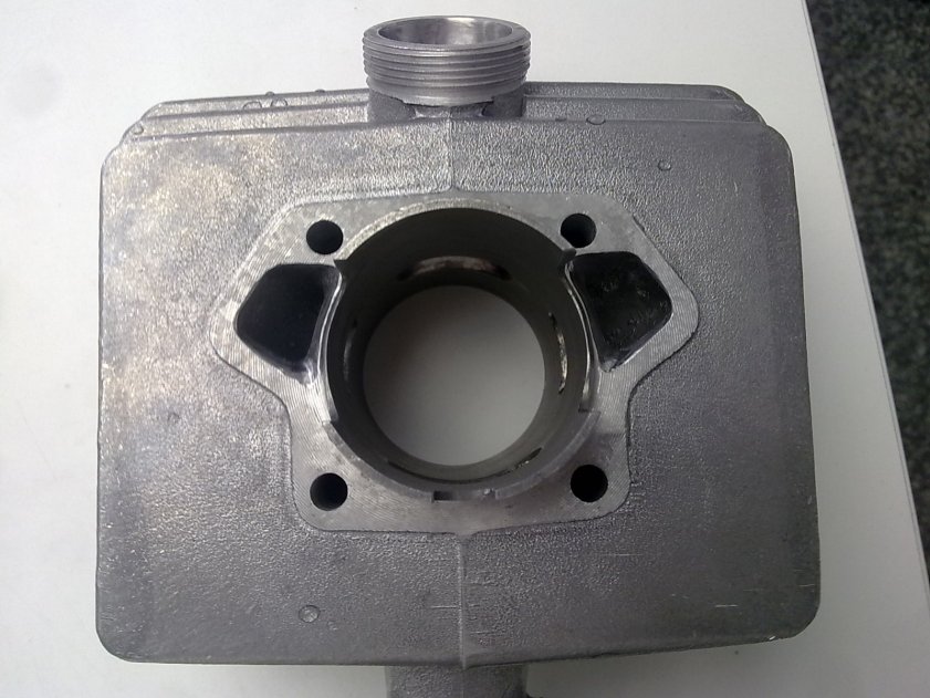 So wie versprochen, habe ich mal ein paar Bilder vom KSM-85er gemacht. Also SZ gemessen ca. 155/125/182. Die Kanäle sind 18 breit, Auslass 26, Einlass 28, alles Sehne. Kein Rennzylinder aber für einen Ü30-Franken (meinen Vermieter), der bisher nur n toten 3Gang 50er gefahren ist, reicht es allemal. Der Kolben ist ein Honda MTX-R 49,5mm. Das Kit hat mit passend gedrehtem Austausch-Zylinderkopf 120 Euro gekostet. Da kann man sich das selbst bauen sparen, besonders wenn man den Kalender voll hat. Gefahren wird es mit Zt 20er BVF und ZT AOA3. Ich weiss nicht ob ich Rabatt wegen Bekanntembonus bekommen habe, aber der Preis ist echt der Hammer. Ich werde das gesamte Projekt die Woche mal ausführlicher posten wenn alle Restteile bei mir eingetroffen sind. Das Ganze ist den Besitzer auf jeden Fall sehr günstig gekommen.