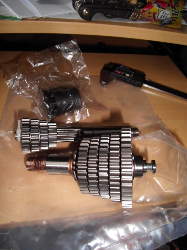also es macht mich schonmal stutzig wie man die Festraddicke vom 1. Gang messen will :-), du hast beim Festrad den 5. und 4. Gang gemessen, diese sind identisch wie Serie 7,7mm, das stimmt. Das Festrad des 2 Ganges ist wesentlich breiter sieht man selbst auf den Bilder (Ist das kleinste Ritzel auf der Kupplungswelle).