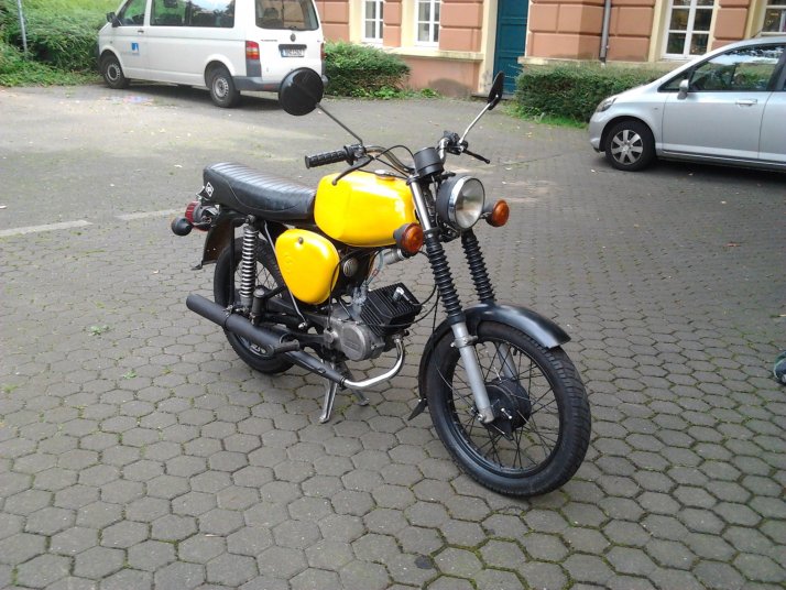 Ja das stimmt. Hab mir jetzt proformer einen Düsensatz für den Vergaser bestellt. Werde den dann die Tage einsetzen und den Schwimmer überprüfen und einstellen und dann ist hoffentlich alles in Ordnung. Aber jetzt is sie endlich fertig (bis auf die Feineinstellungen):