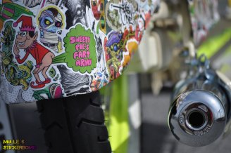 ich möchte euch hier mal meine Stickerbomb-Schwalbe vorstellen. Basis war eine Kr51/2 von 1984, die eigentlich komplett umgebaut und fast alle Teile ausgetauscht oder überarbeitet wurden.