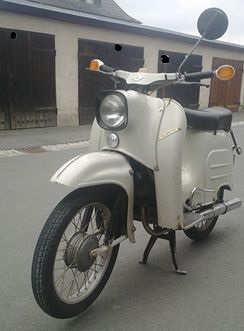 Pastelweiß gab es Original nur bei der K und das Goldene Schwalbe Emblem auch. Was ich gerade noch seh ist das sie Plaste Handhebel hat die erst ab 1976 kamen und für 400km sieht der Lack Recht runter aus. Meine K mit 36000km sah nicht viel schlechter.