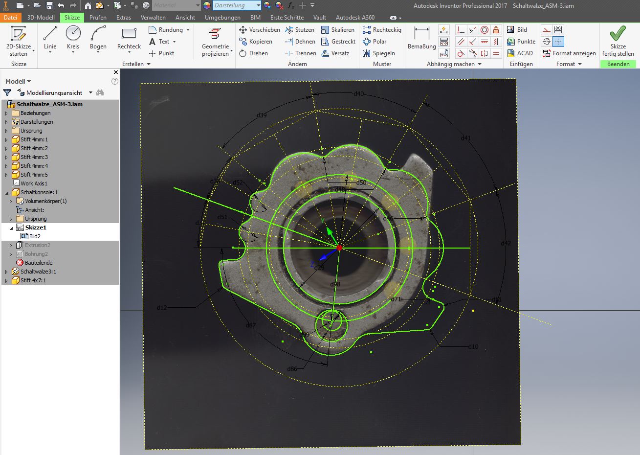 Da die Schaltwalze ein relativ komplexes, mit Hausmitteln schwierig zu vermessendes Bauteil ist, haben wir eine Walze geköpft, um die Maße besser entnehmen zu können.