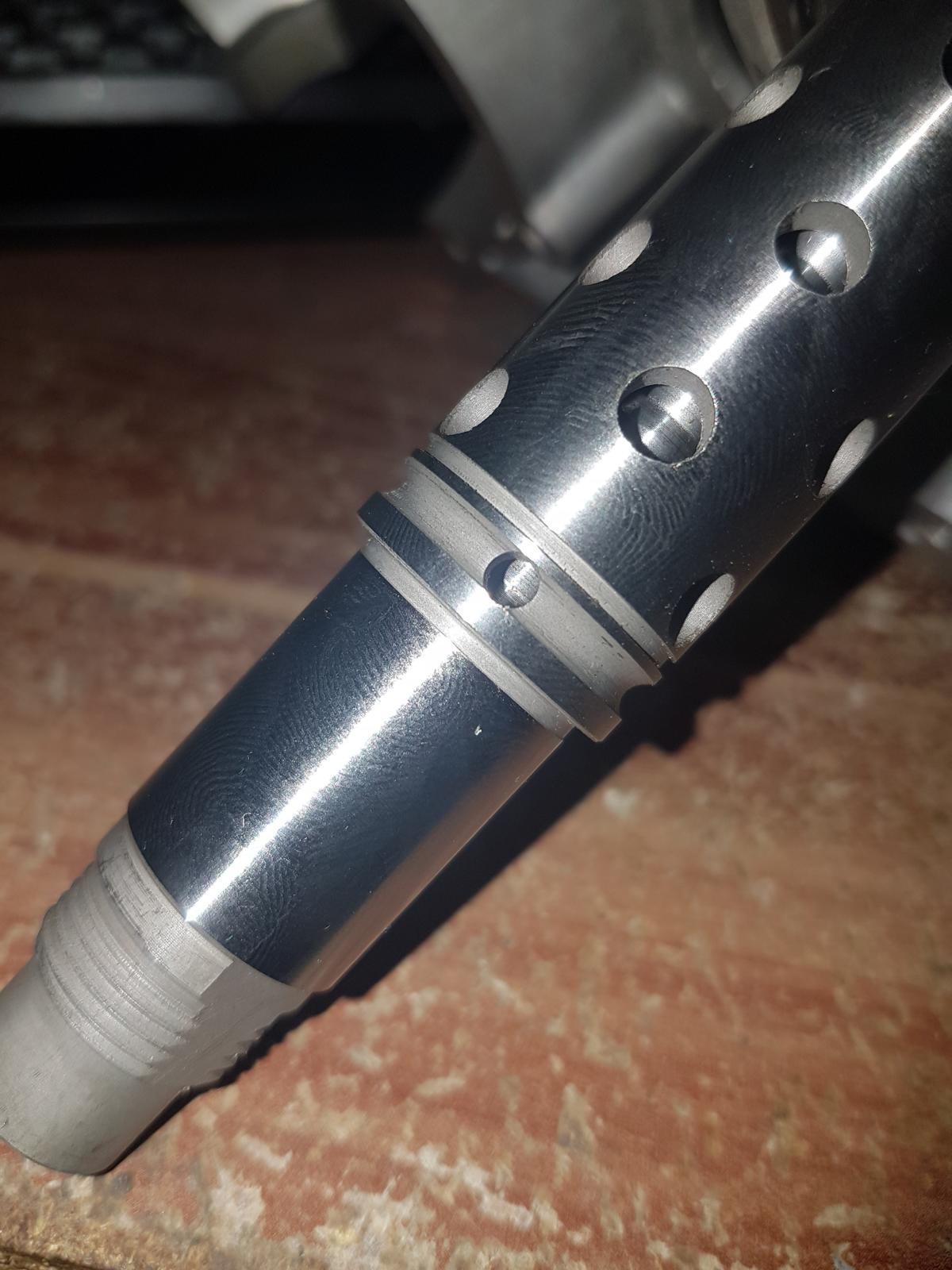 Bzgl. der Zentrierbohrer habe ich mich bei Deinen Bildern gefragt "Warum macht der Kerle das mit den kurzen ZB?" Nen Blick auf Wikipedia (https://de.wikipedia.org/wiki/Bohrer#Ze…er_und_Anbohrer) hat mir dann die Augen geoeffnet und ich maches es beim 2. Mal auch so wie Du. Dummerweise gibt es keine Zentrierbohrer mit nem Schaftdurchmesser von 7mm, nur 4, 6, 8mm...also muss ich wieder mit normalen Bohrern aufbohren. Ich habe uebrigens keinen Teilapparat, habs mir Drehmeissel auf der Drehbank angerissen (russisch, aber geht), angekoernt und dann 2,5mm, 4mm und anschliessend 7mm gebohrt. Ist vielleicht nich auf 100stel genau, aber muss es auch nicht ![]()