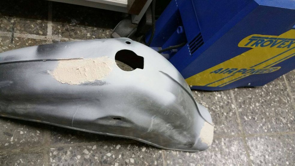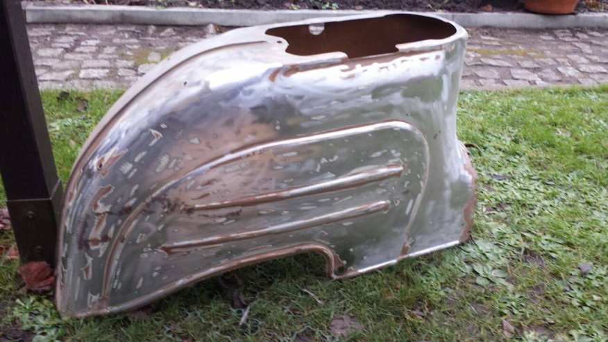 Das Blechkleid wurde teilweise ausgetauscht. Der Zustand sieht so ganz ok aus. Aber von nahem war vieles gerissen, verbeult und verrostet. Knieblech und Panzer wurden ersetzt. Koti wurde geschweißt.