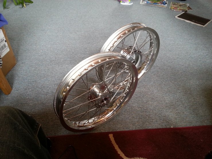 Alufelgen mit Heidenau Slicks hielten Einzug und alle Aluteile wurden poliert. Die hinteren Dämpfer einer 250er MZ hielten Einzug und die Gabel wurde