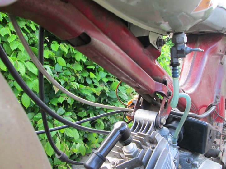 So...nach langer Zeit schreib ich mal wieder. Leider war ich beim schraben so vertieft, dass ich vergessen hab Bilder zu machen. Bei der ersten Probefahrt hab das Bild vom fast fertigen Moped gemacht.