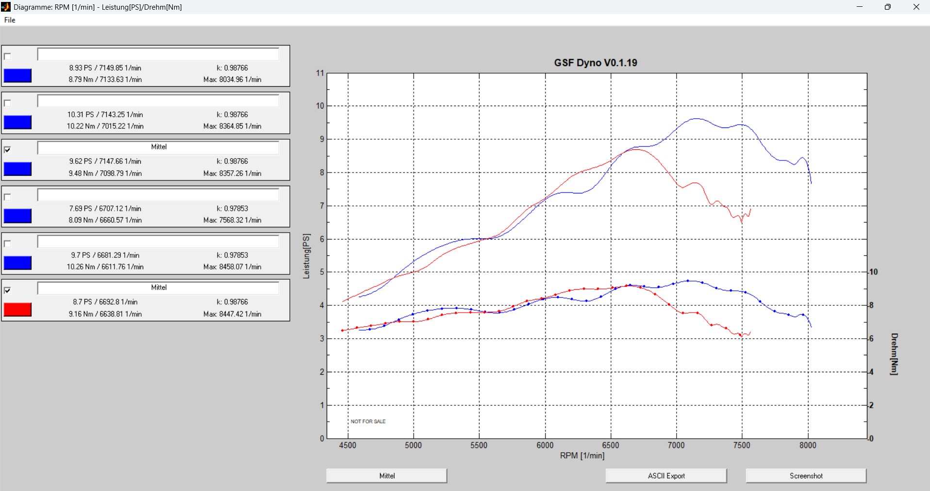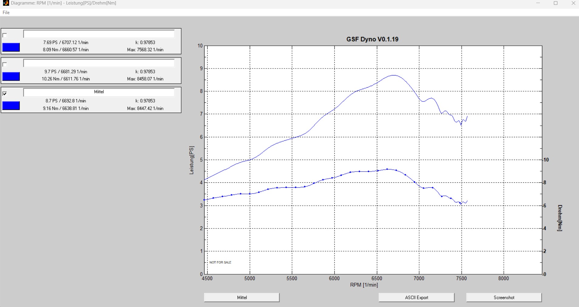 Habe ein wenig mit GSF Dyno gemessen, das bestätigt das. Vorher war nur der kleine RZT Luffi verbaut, der größere Filter brachte nur minimalst mehr Leistung. Die Zündung habe ich auf 18 Grad bei Höchstleistung, also 6500 Umdrehungen abgeblitzt.