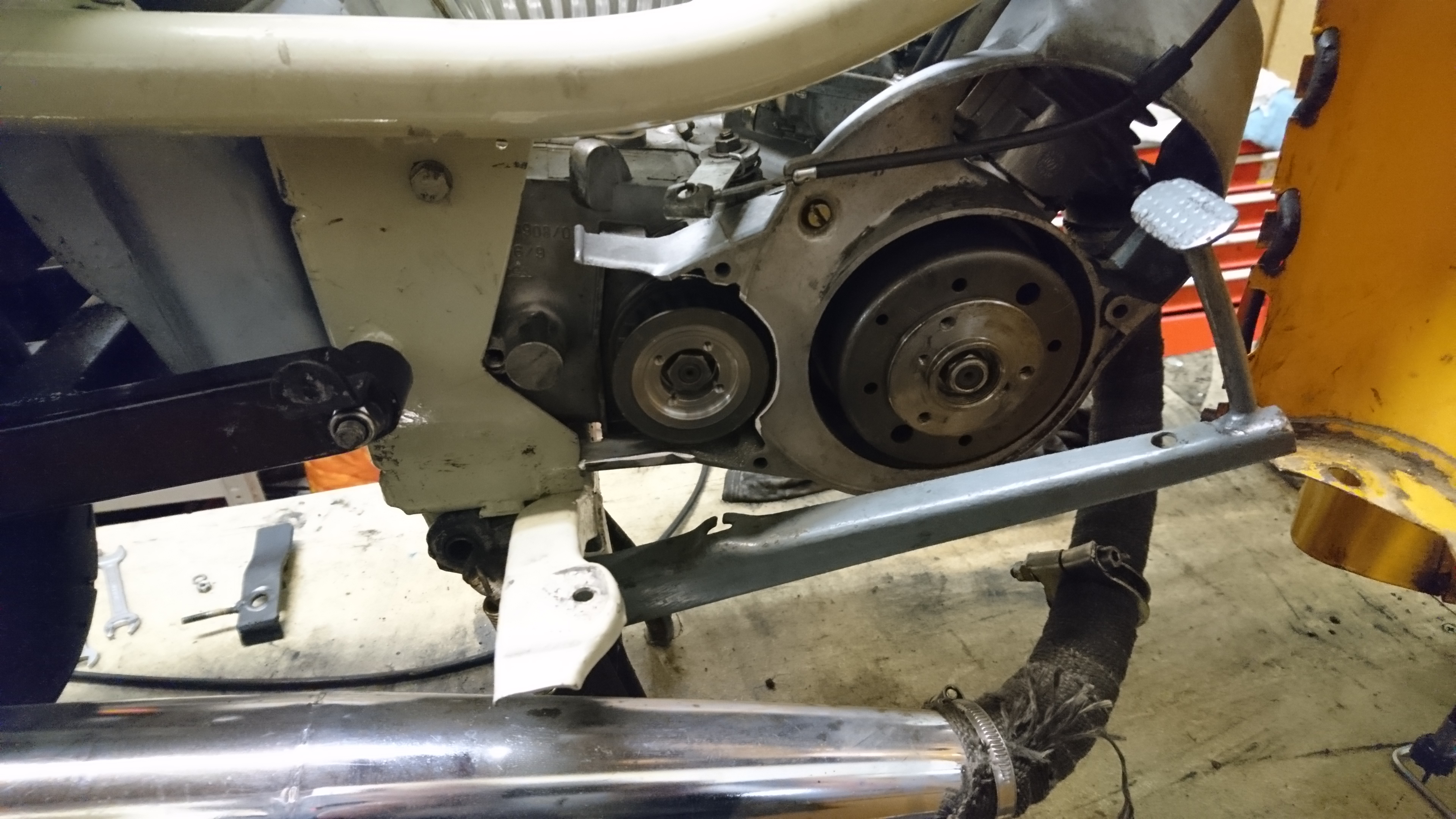 Bremse Vorne auf Mz Trommel umgebaut mit Jawa Duplexbremsankerplatte.Mit dem Auspuff bin ich noch nicht ganz so glücklich und probiere da noch ein wenig mit verschiedenen Pötten