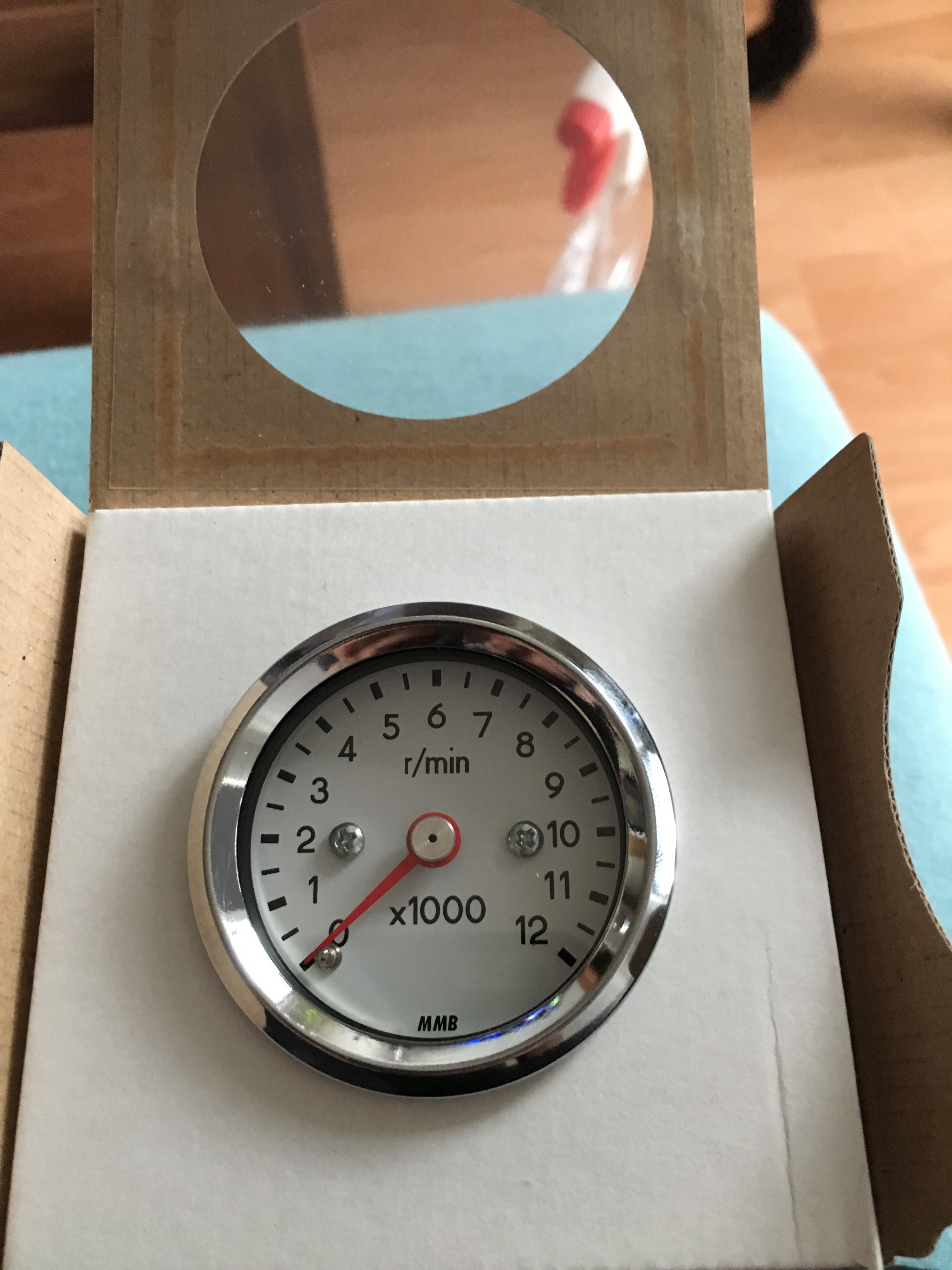 So der Drehzahlmesser ist da, bis auf die Nadel alles Original gehalten.