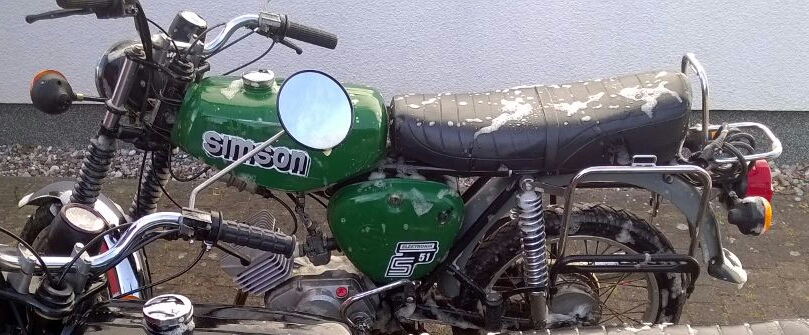 Besonderheiten: 2 Panorama-Spiegel, Beule im Tank (rechts), kleiner weißer Fleck auf Sitzbank, elektronische Zündung, 2 verchromte Seitengepäckträger, verchromter Kotflügel vorne, 60 ccm Reso-Allu-Zylinder, Reifen von Vee Rupper, Allu-Felgen, Bing Vergaser, neuer Auspuff, hinten: 5-fach verstellbare Enduro-Dämpfer