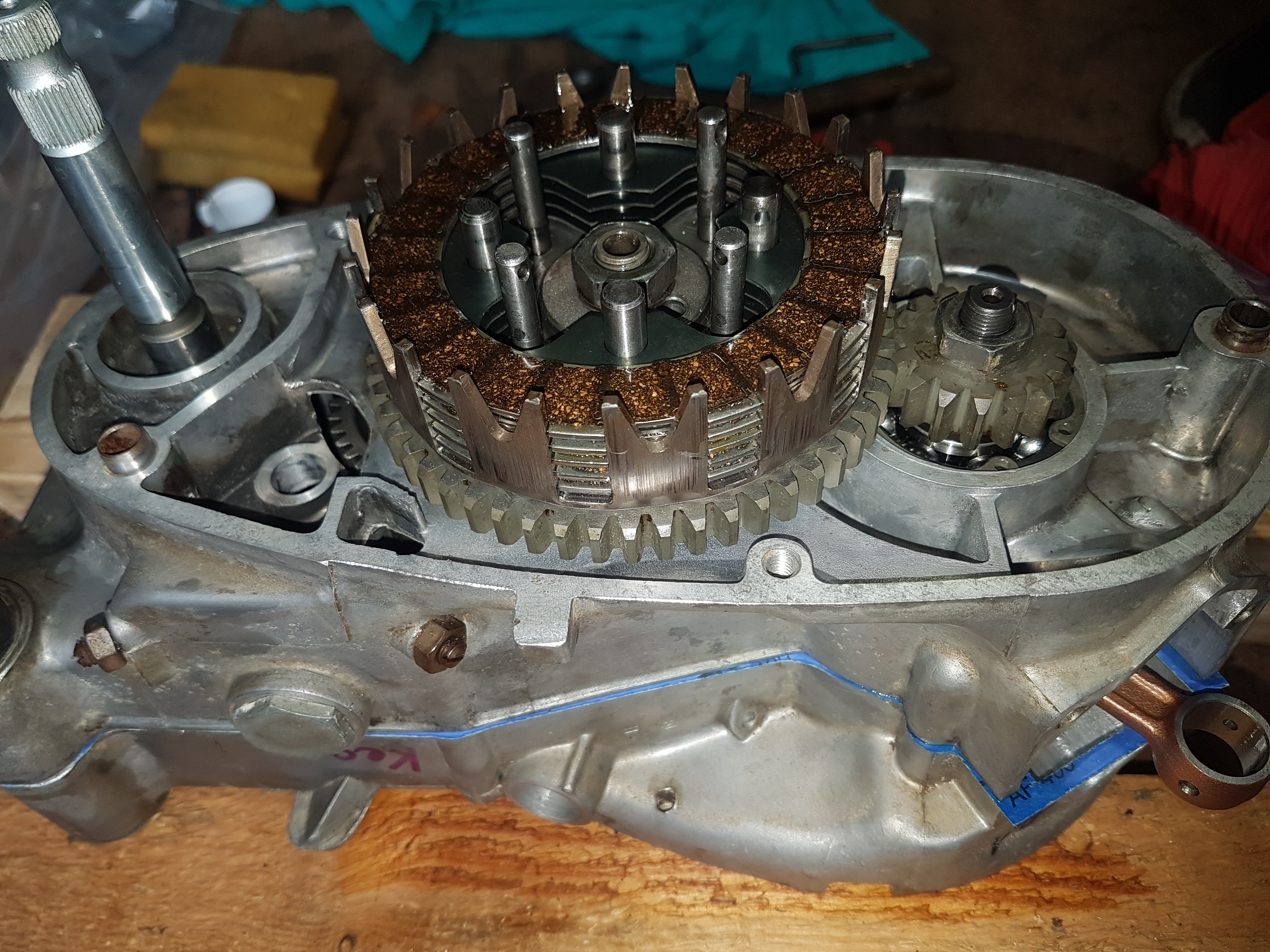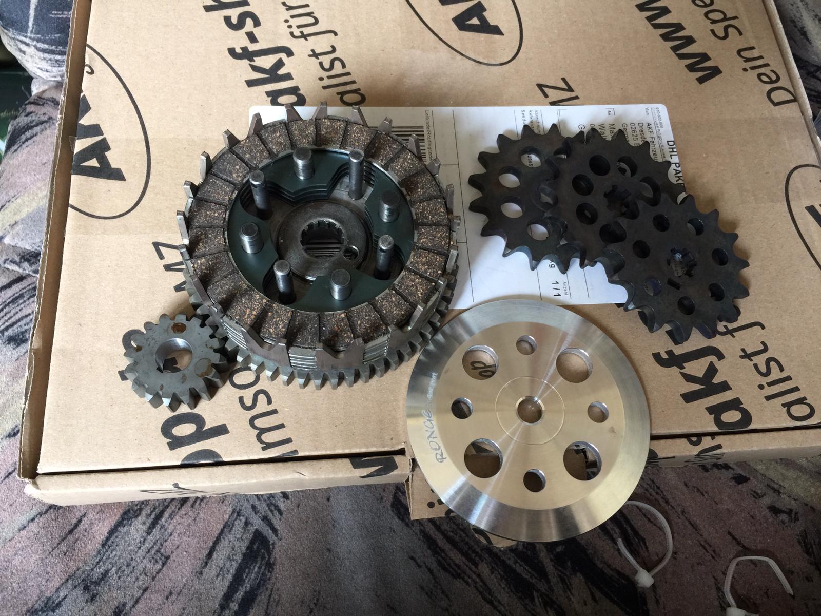 Heute kam der Block zusammen nachdem die Kurbelwelle endlich fertig war. Ein für okay befundenes 3Gang Getriebe, die 42mm Hub Kurbelwelle, ein Ronge Primär mit 5 Lamellen Kupplung, Ronge Kettenritzel wurden verbaut.