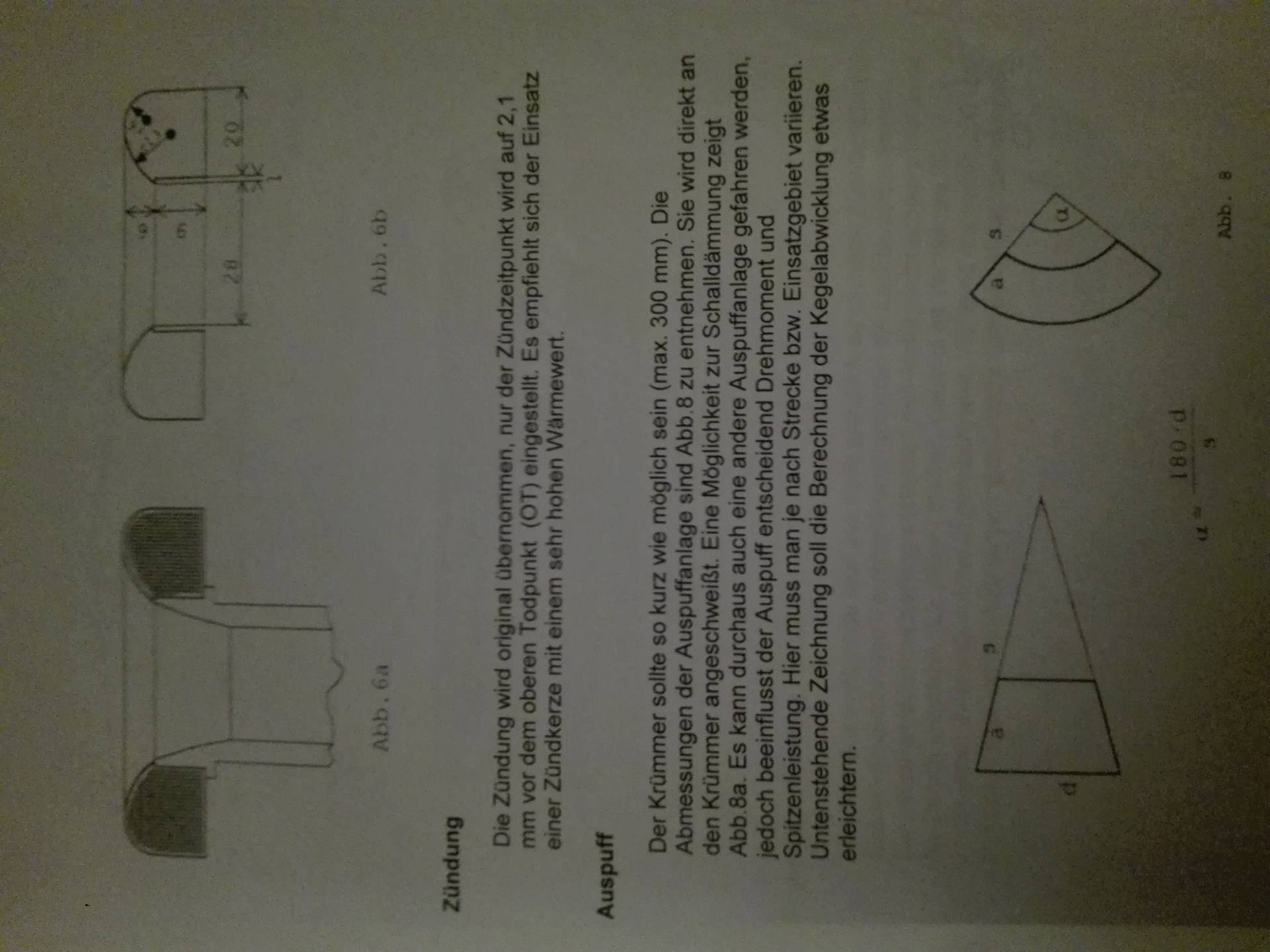 Das Ausmessen des Zylinder hat folgende Steuerwinkel ergeben: Einlass 135° Überströmer
