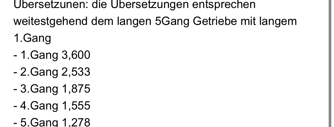 Mit der o.g. Übersetzung fährt es aktuell ca. 95 km/h Laut Handy-GPS-Tacho. Die Übersetzung des letzten Gangs ist recht ähnlich dem eines 5 Gang Getriebes (vgl. Ronge 5 Gang, siehe Fotos im Anhang).Es kann definitiv auch mit 16Z Ritzel gefahren und somit sind 100km/h auf der Gerade, per GPS gemessen, problemlos möglich. Viel mehr wird da aber nicht möglich sein, wenn man nicht auf den ordentlichen Durchzug verzichten möchte und den letzten Gang auf der Geraden nutzen möchte und nicht nur für Bergab-Fahrten nimmt.