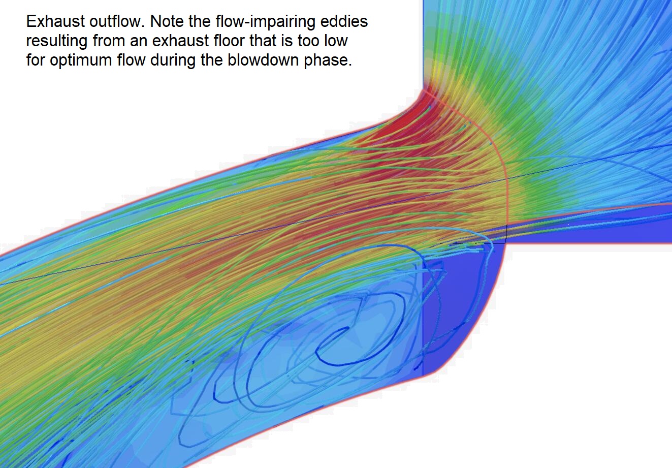 Um nochmal an das Thema Form und Größe des Auslasskanals anzuknüpfen, die Grafik hier zeigt gut, wie ein zu hoher Auslasskanal während des Vorauslasses Turbulenzen begünstigt.