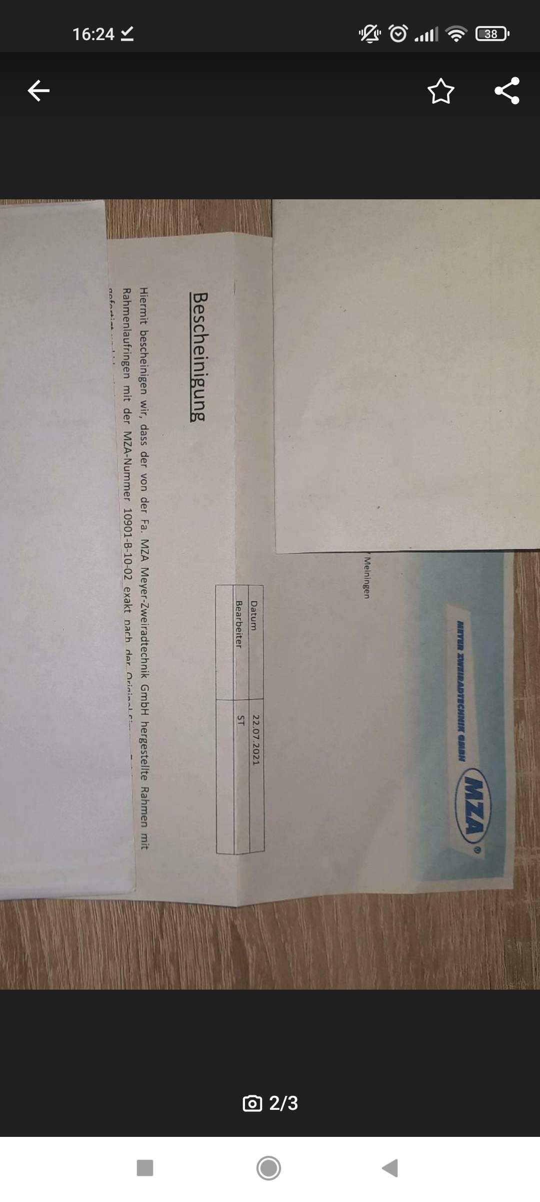 Ist sie bei meinem Moped auch. Aber neues Projekt, neuer Prüfer. Der trägt dann leider nur die ZT Gabel ein, die SWH hab ich also für umsonst gekauft ![]()