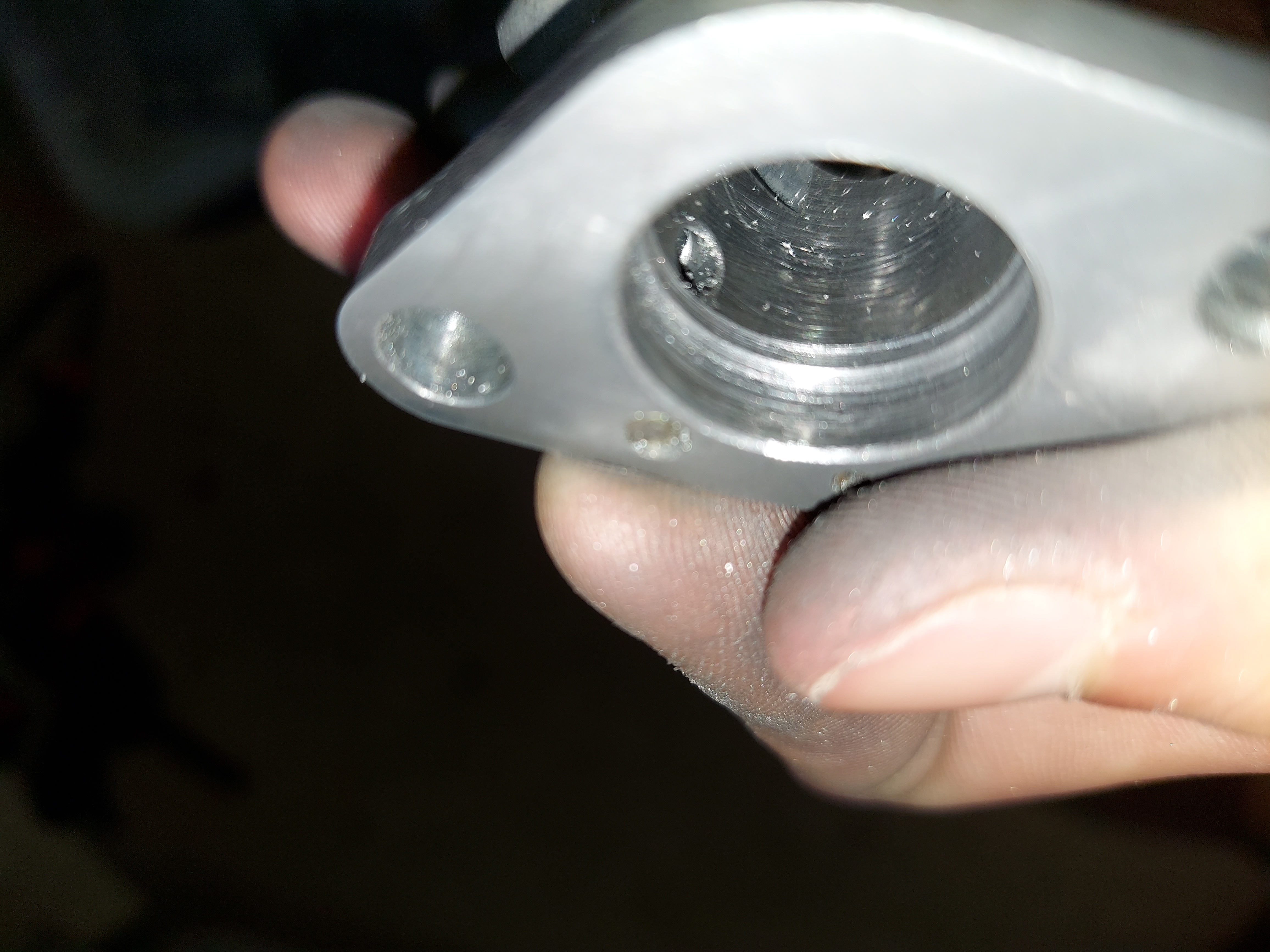 Gestern beim Vergaser aufbohren ist ein kleines Missgeschick passiert. Kurz vorm Ende hat der Vergaser leider einen Span gezogen, welcher dann, wie im Bild zu sehen, leider sehr unschöne Riefen hinterlassen hat. Ich schätze mal ca. 0,5 bis 1mm tief. Nun hab ich mir gedacht ich klebe sie einfach mit JB-Weld zu und schleife es wieder schön glatt. Im Nachhinein hatte ich dann aber doch ein paar Sorgen, nicht, dass sich sm Ende doch was löst und in den Zylinder fliegt.