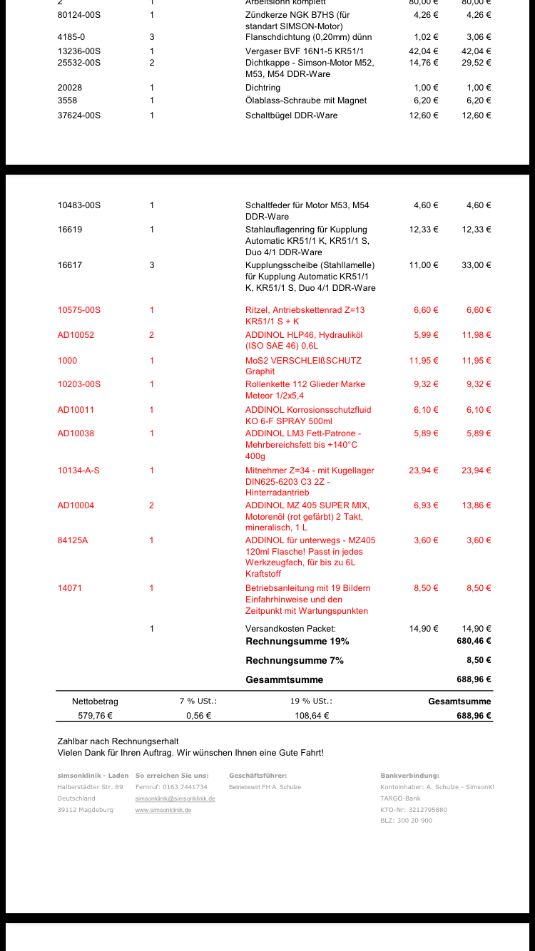 2.waren Teile auf der Rechnung im Wert von über 100€ die ich nicht bestellt habe (das grenzt für mich an Betrug)